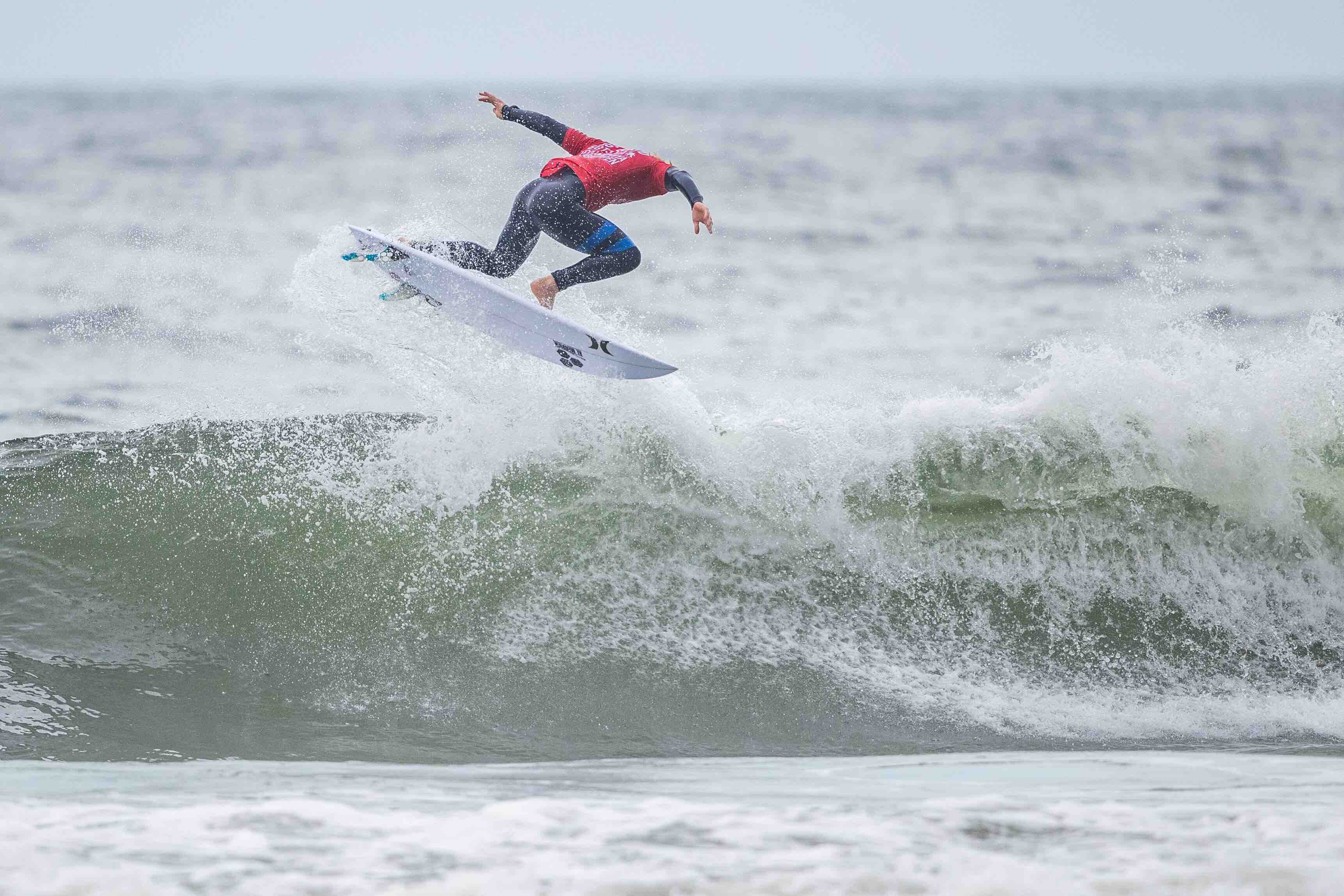 対戦相手であるJake Marshallが1本目の波で7.50ptをマークすると、続けて2本目の波では4.63ptをバックアップスコアにまとめ、先手必勝の作戦を実行。