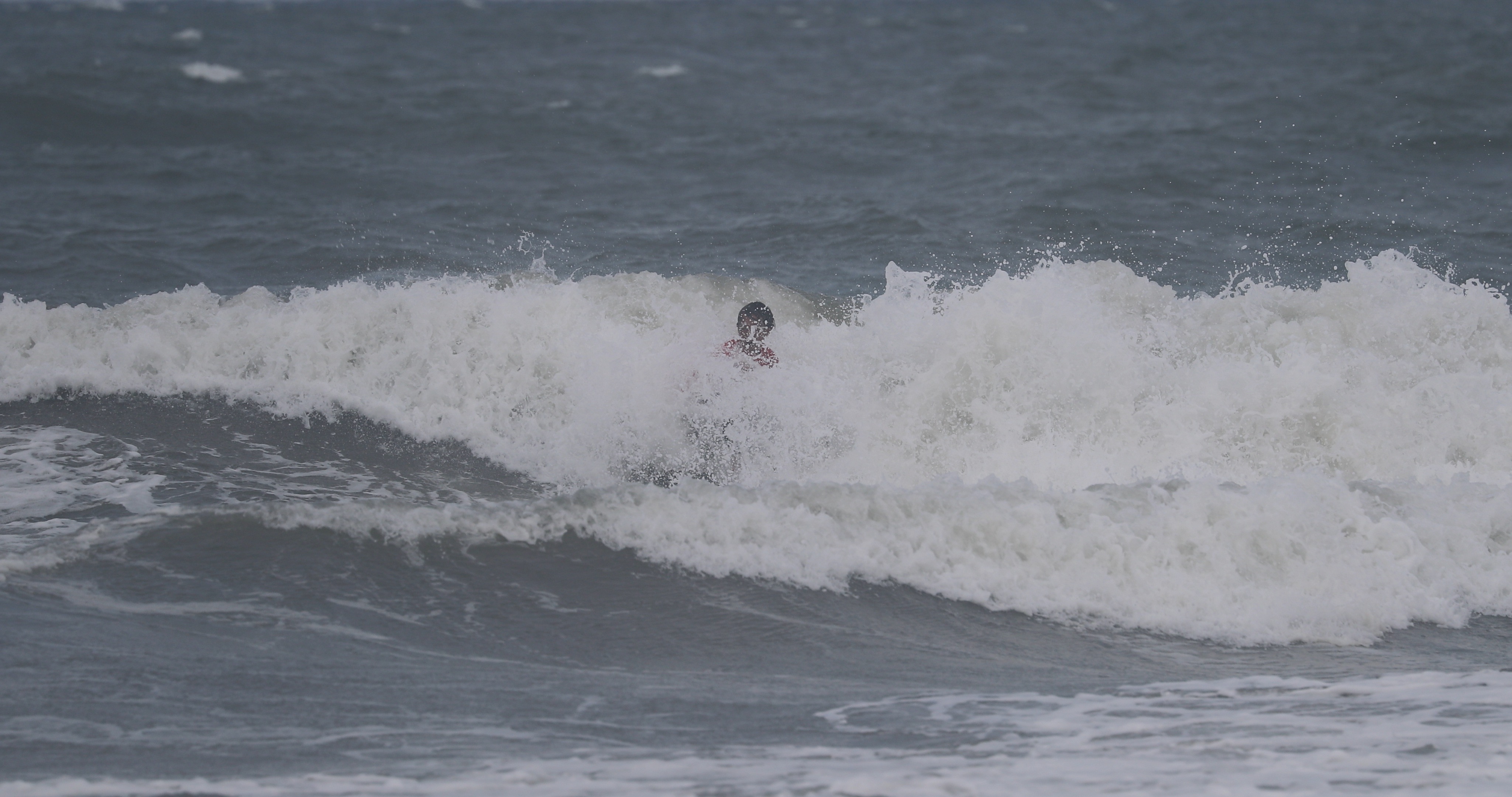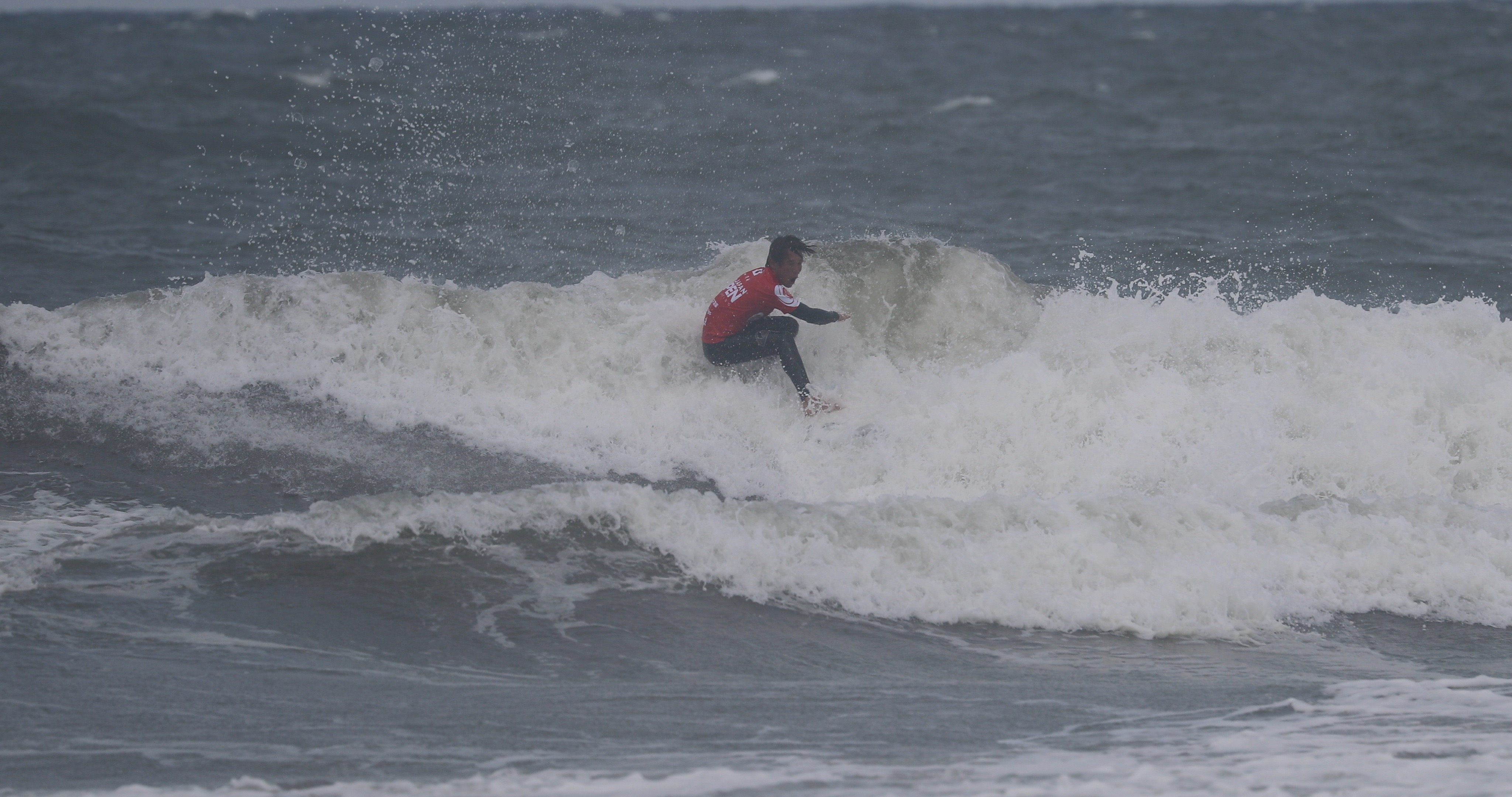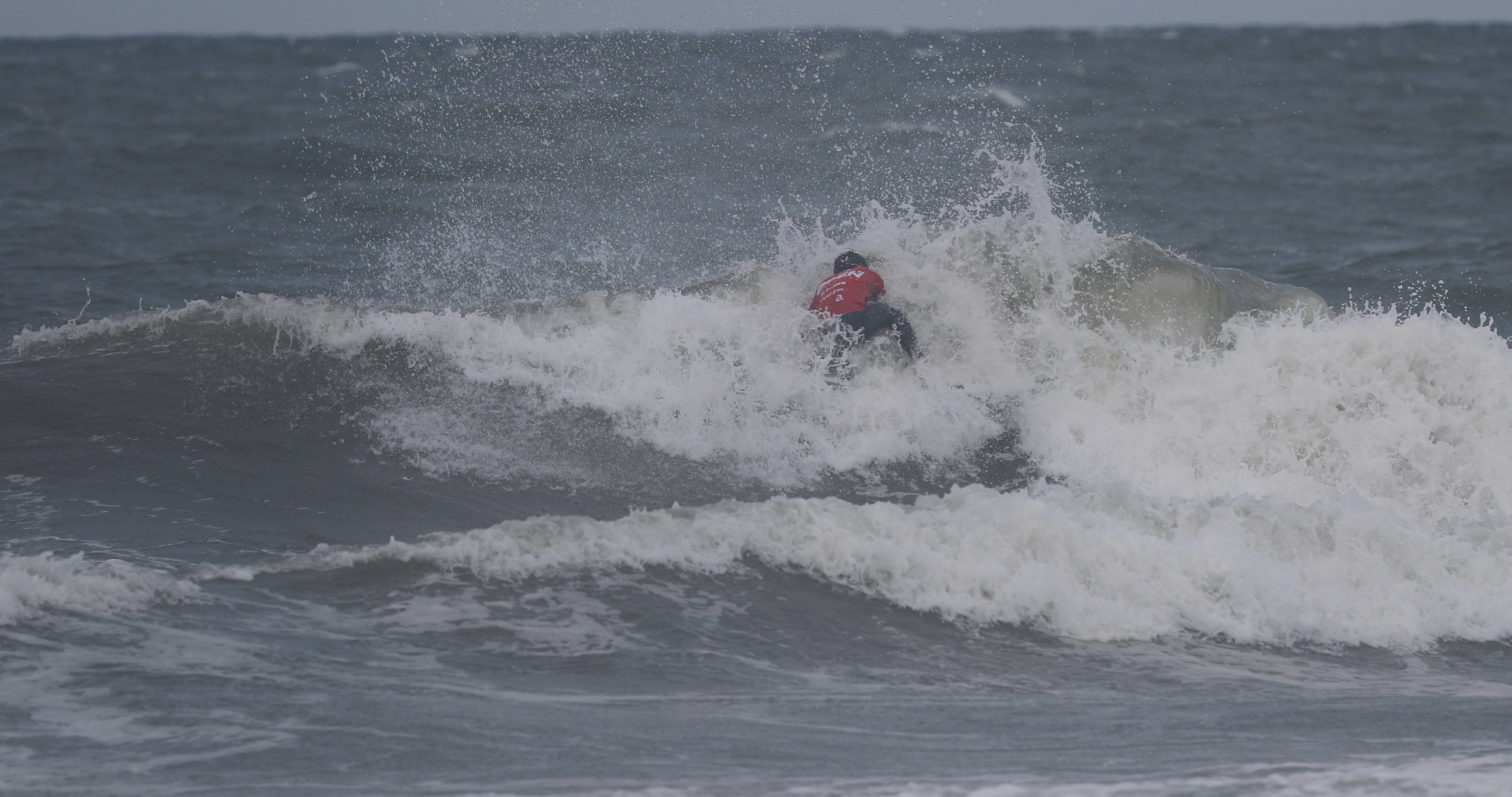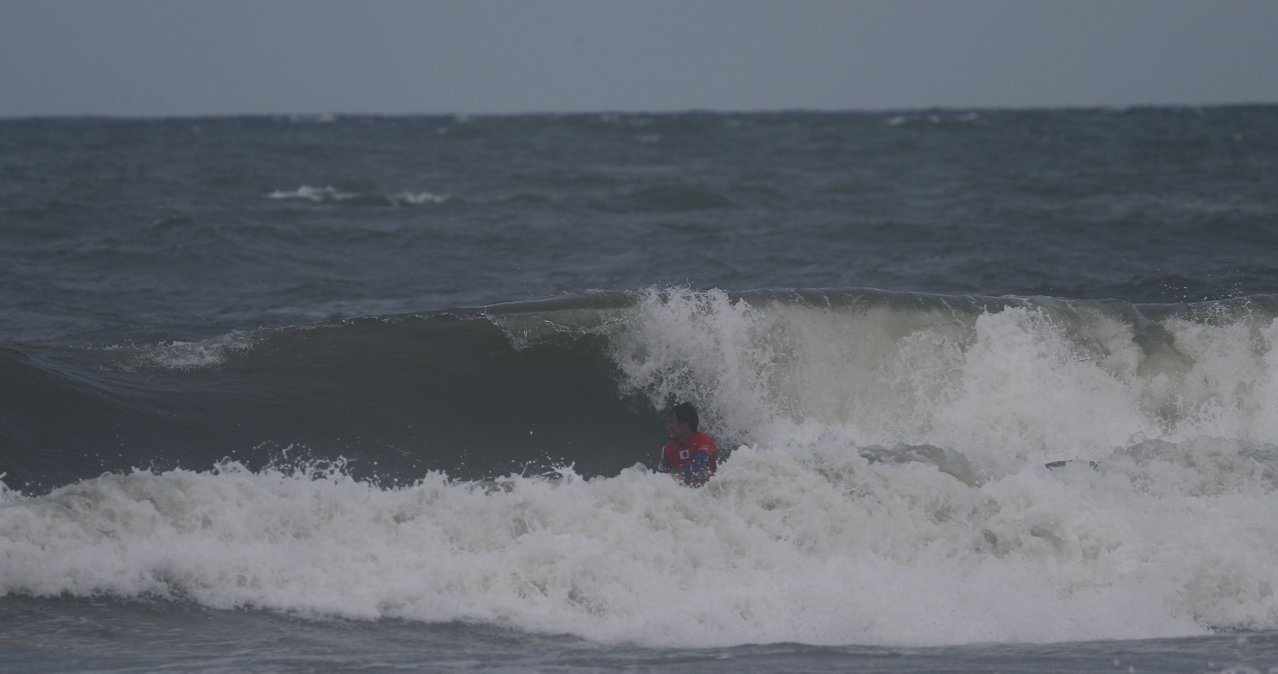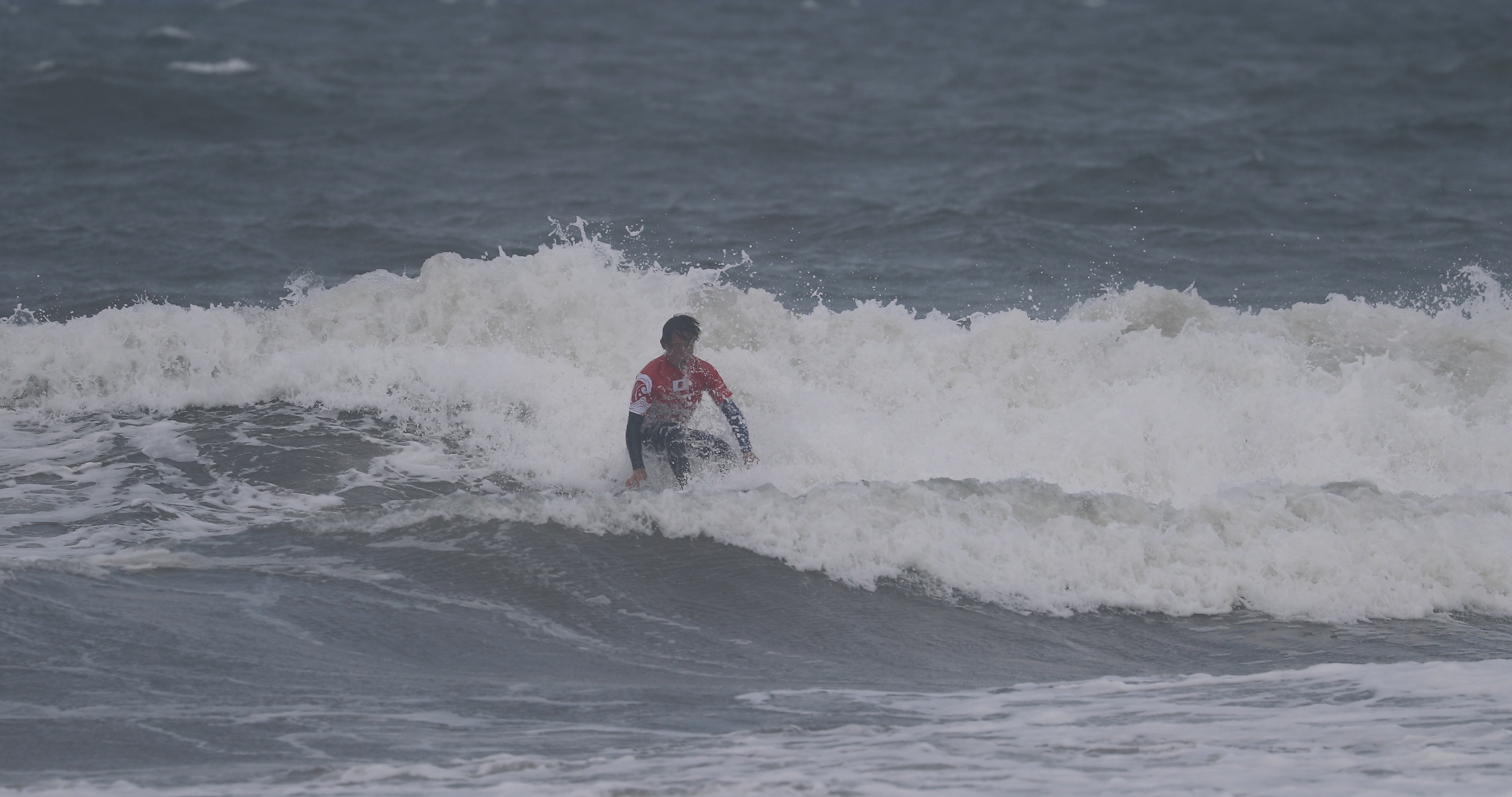 深いボトムターンから際どいリップセクションへ縦にアプローチし、当て込んでフィンズフリーしながらも、北寄りのサイドオンショアによって予想以上にシフトしてくるリップセクションの変化を見極めたかのごとく急遽ボードを大きく180°返して体の真下にホールドしつつ、そのままリップセクションをドリフト気味にパワースライドして仕上げてきたこの1発。