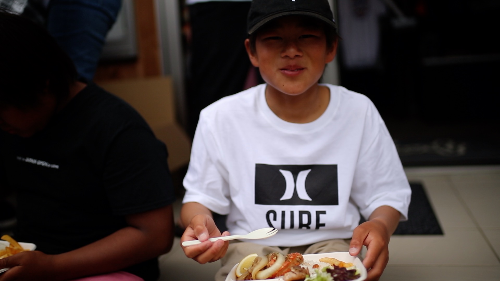 HIC千葉でのイベントでは昼食はBBQランチであったが、今回のPlaya Surfでの第2回目では”海辺のごはんや One G’s”によるハワイアン・プレートランチによる昼食会となり、朝のサーフセッションで少し打ち解けたHURLEYプロライダーたちとの親交をさらに深める場となった。