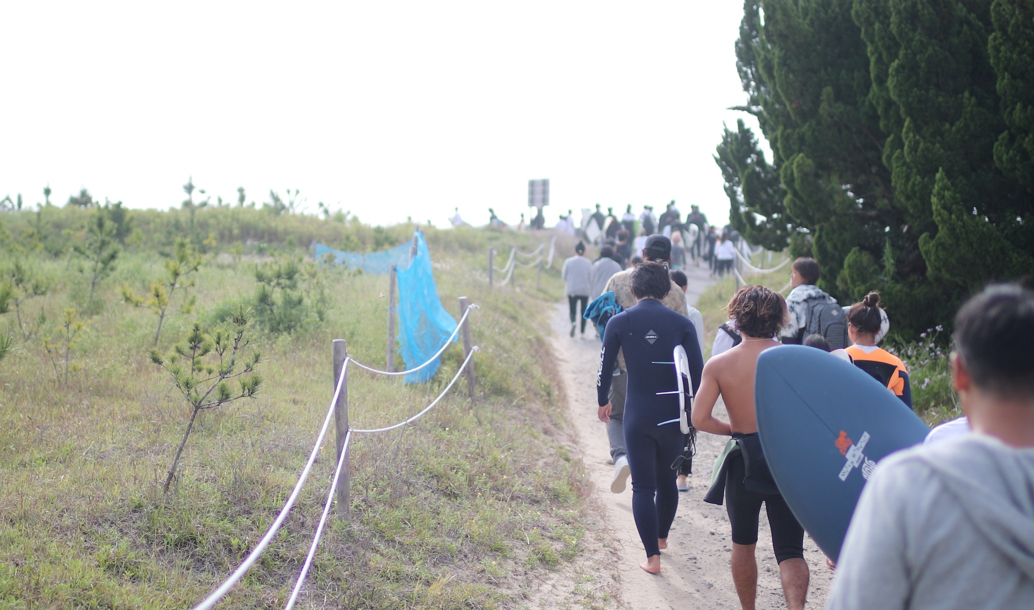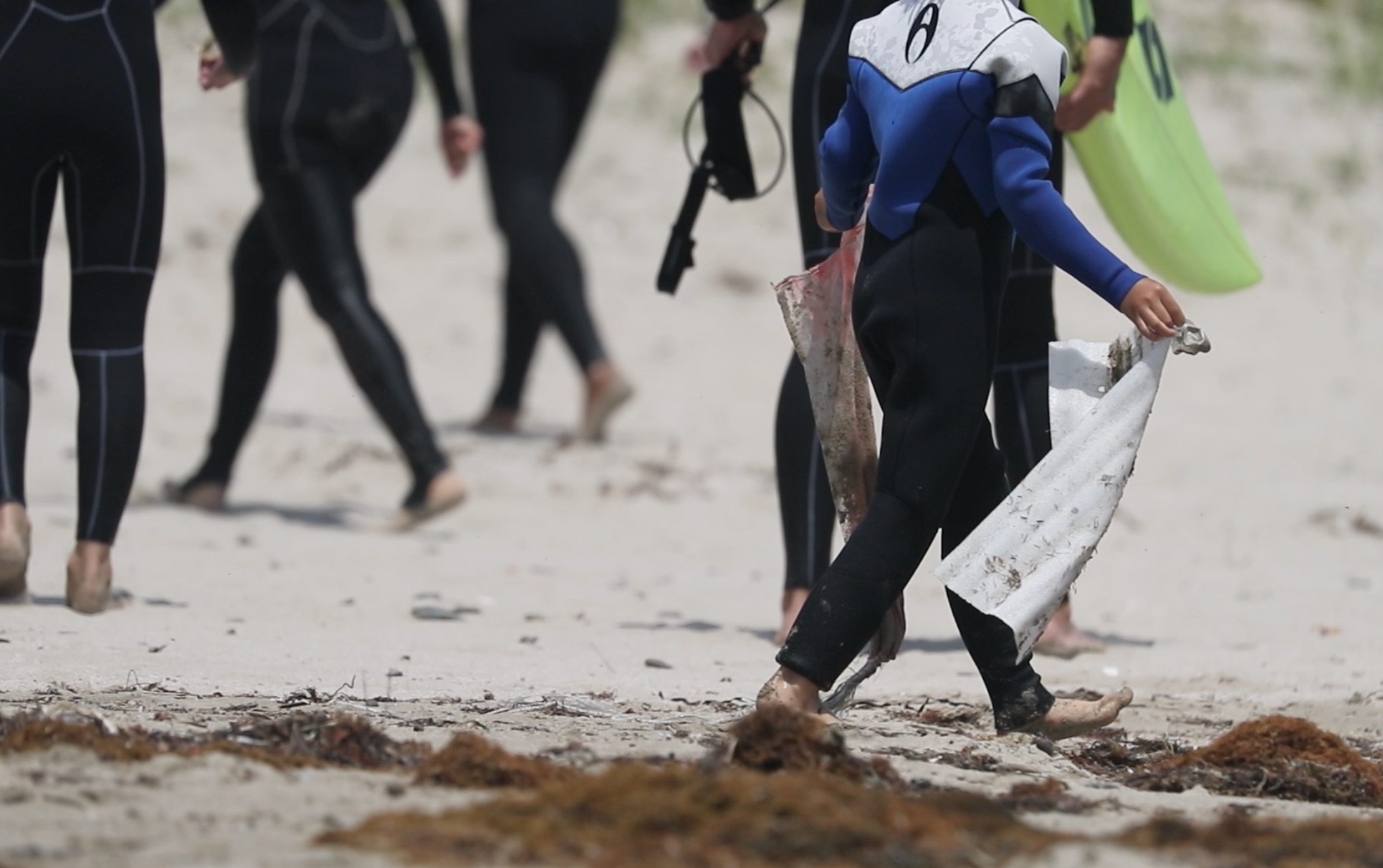 フリーサーフセッションと無料サーフィンスクールを終え、メイン会場のPlaya Surfへ戻る前に、ビーチクリーンも開催。
