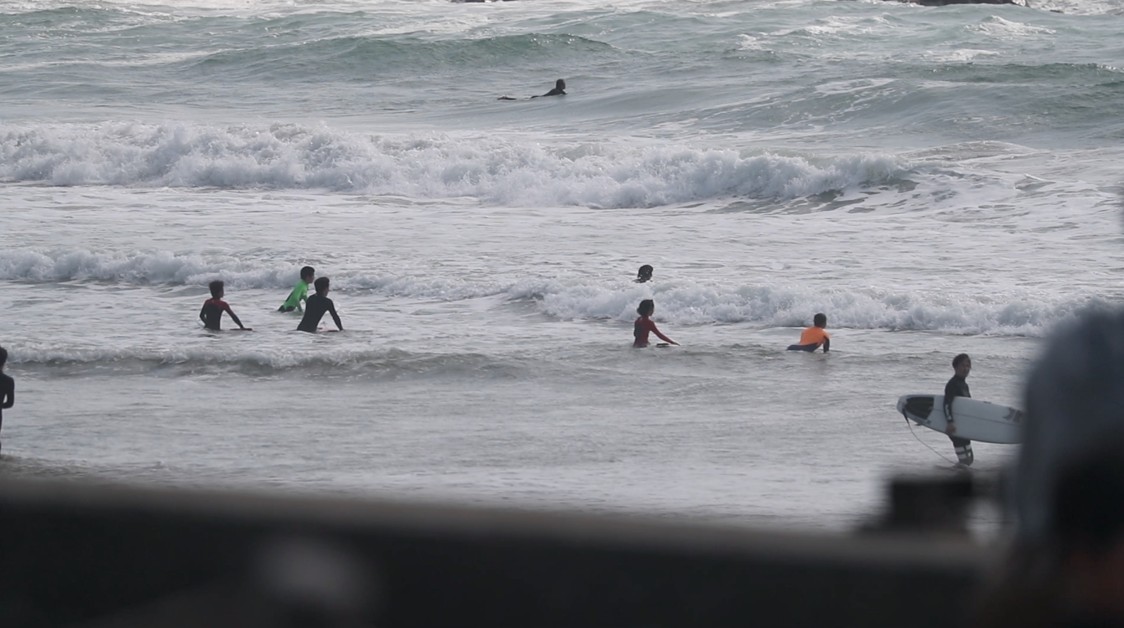 2時間弱のフリーセッションを終えると、今度は初心者を対象とした無料サーフィンスクールを開催。