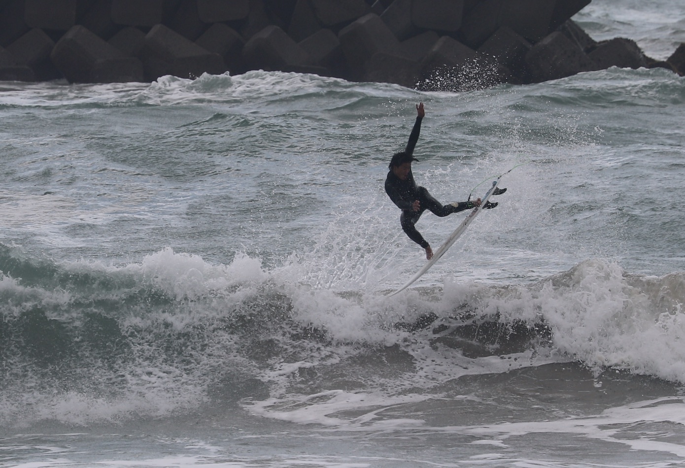 地元伊勢の期待の若手、浜村海斗とその実弟の浜村アルハ、さらに川瀬新波、川瀬心那、川瀬斗嵐といった川瀬3兄弟も含め、多くのキッズサーファーたちが同じ海の中で日本トップレベルのプロサーファーたちと一緒にサーフィンできるこの貴重な機会逃さぬべく、このフリーセッションに参加。