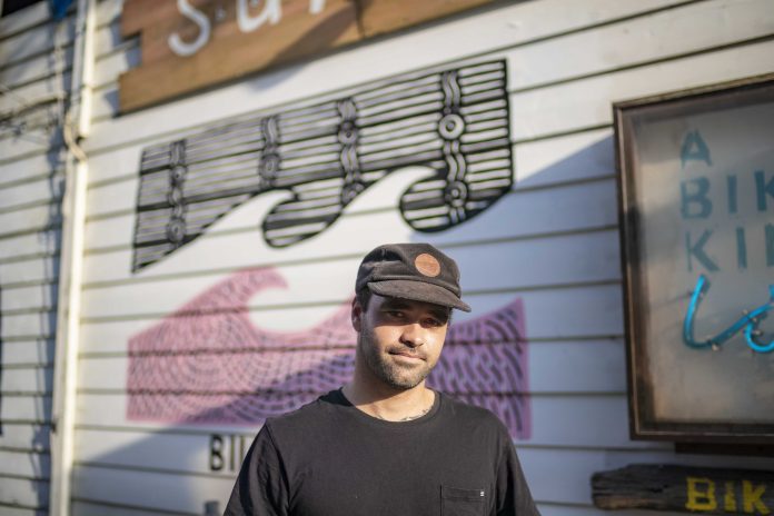 有名アーティストのライブイベントをはじめ、日本では唯一のBILLABONGとのコラボ・ハンバーガーを取り扱うほか、BILLABONGのコンセプト・ショップBILLABONG Beach Houseを併設する逗子SURFERSのエントランス横の白い壁をキャンパスに、オーストラリアの先住民族アボリジニーの血を引くOtis Careyのアートのスタイルであるアボリジニー伝統の模様を進化させた作品を描いていく。