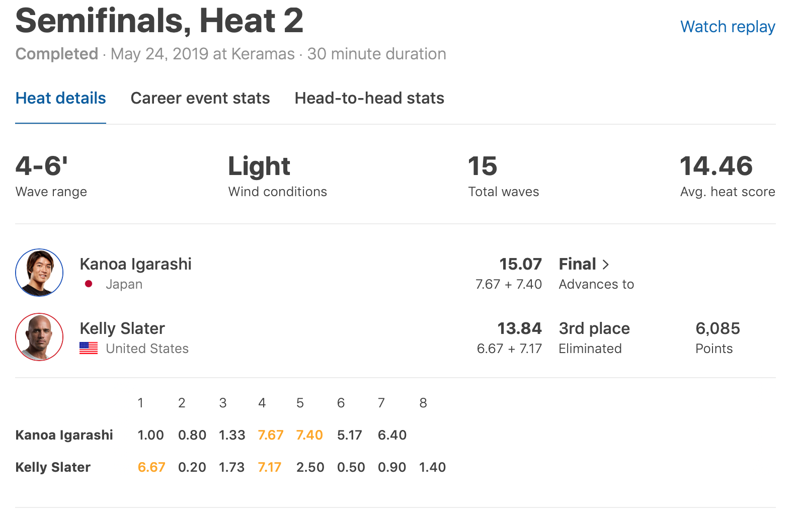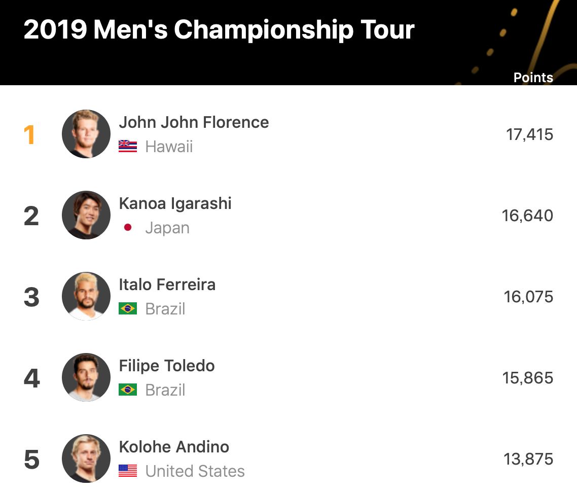 この一勝により五十嵐カノアはCTランキング2位へ浮上!