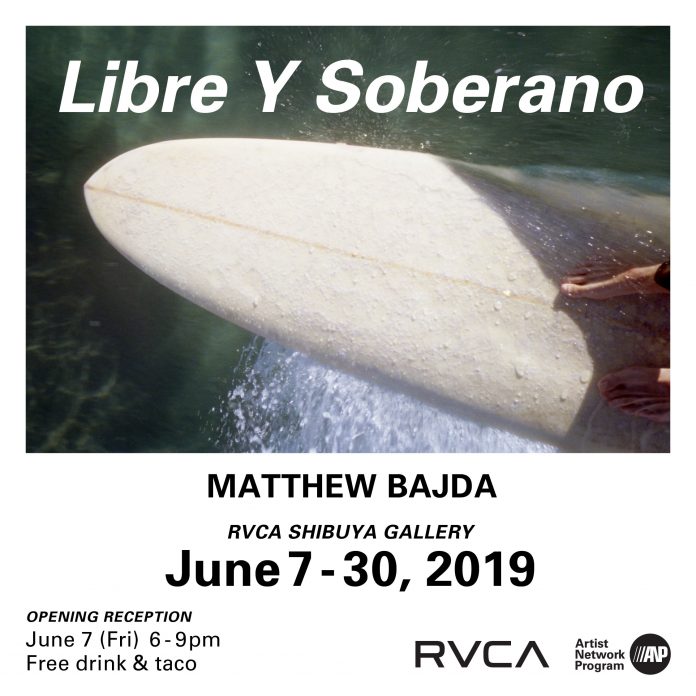 ■Libre Y Soberano by Matthew Bajda Date & Time : 2019年6月7日(金) – 2019年6月30日(日)11:00 – 20:00 ※初日6月7日(金)18 – 21時にてどなたでもご参加いただけるオープニングレセプションを開催します Location : RVCA SHIBUYA GALLERY (東京都渋谷区神宮前5-27-5 TOLDAビル2F) ※無料開放となっておりますのでどなたでもご覧頂けます
