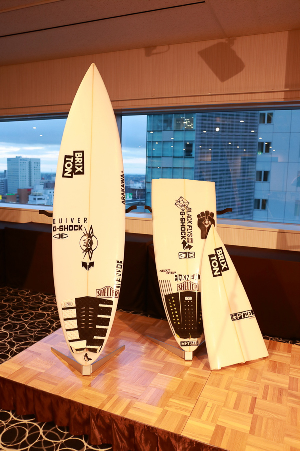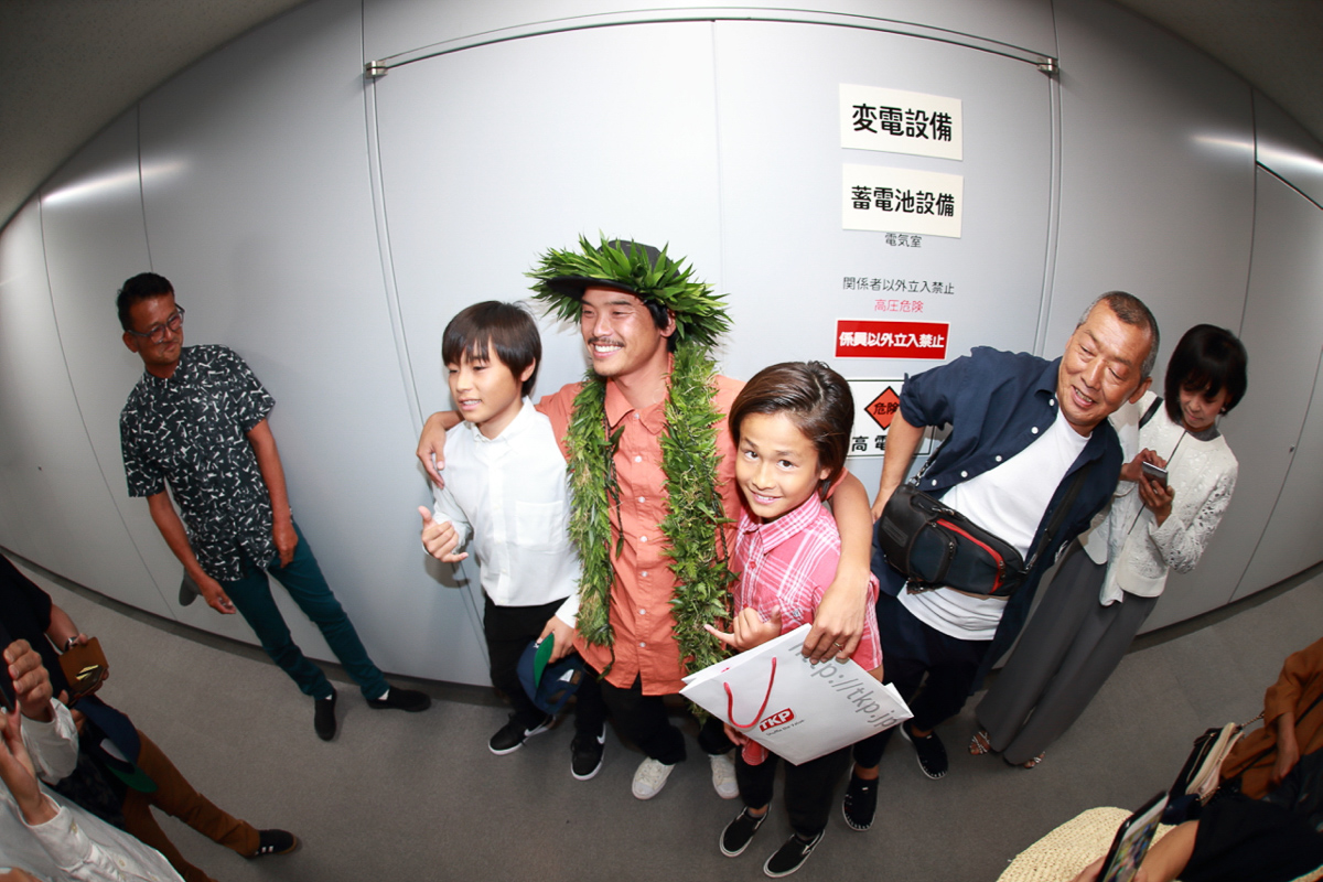 受付には、幼い頃から松岡慧斗を兄のように慕い、今は同じプロサーファーとして活躍する高橋みなとや小島翼、小嶋OJK海生、プロボディーボーダーの後藤朝子、先輩の越後将平プロとメンツルこと高橋雄治、熊谷航といった仙台新港を代表するトップサーファーたちの面々。