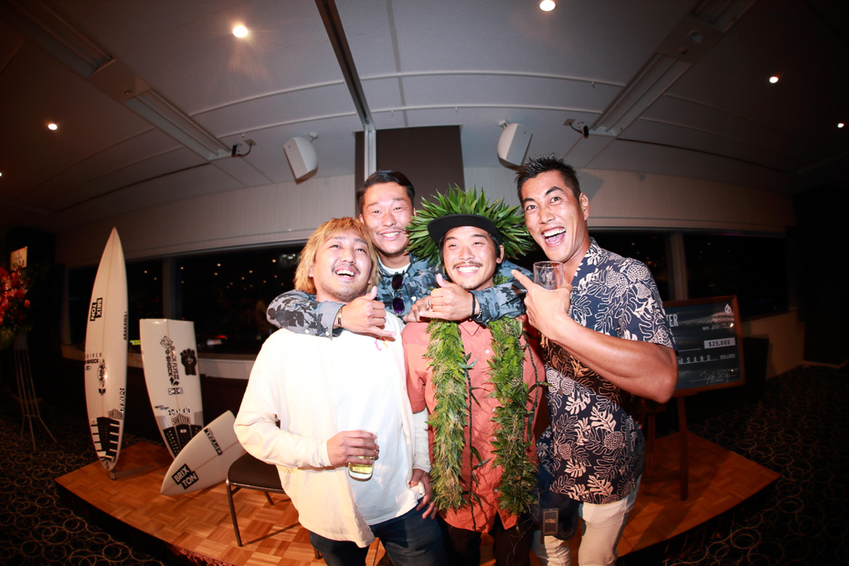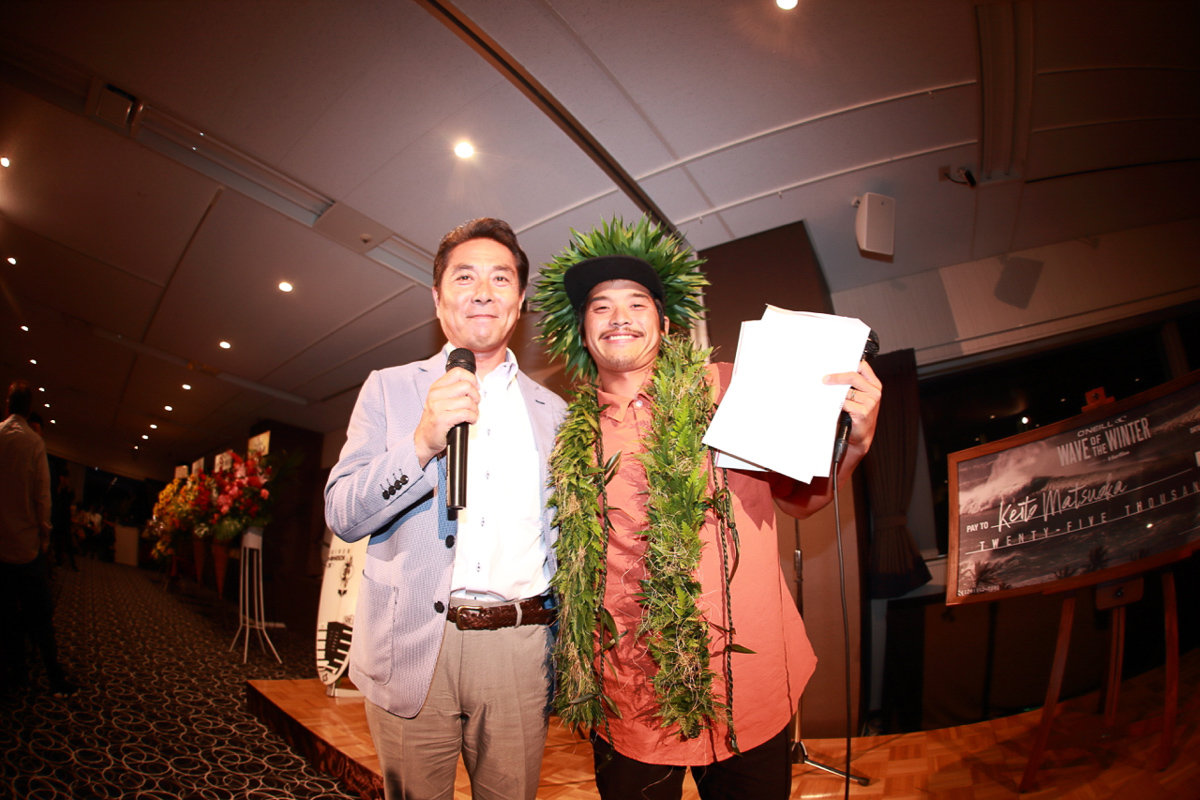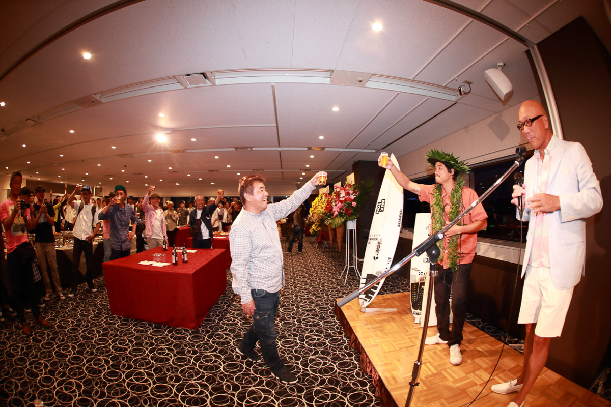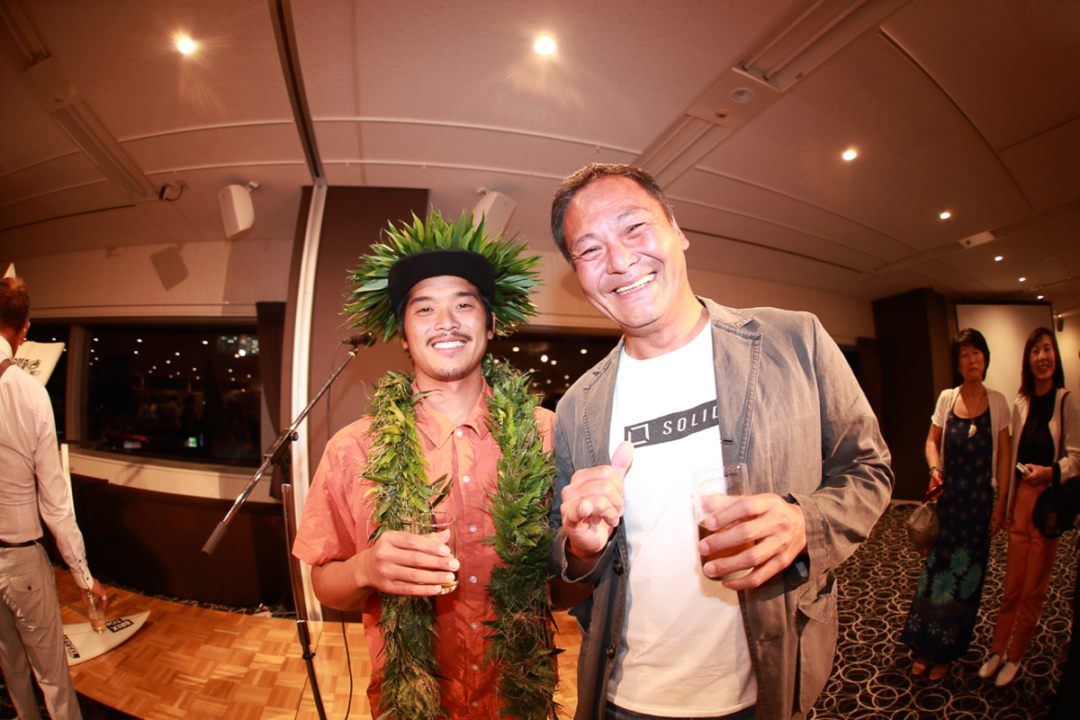 祝賀会を締めくくる最後のスピーチで、どんなことがあっても決して涙を流すことのなかった松岡慧斗の涙を初めて目にしたとき、彼の強さの根底にあり続けてきたものは、この会場にすべて集約されていたことを思い知らされたような気持ちになり、改めて1本の波にすべてを賭けることができる松岡慧斗という一人のサーファーのすごさを痛感し、胸が熱くなった。
