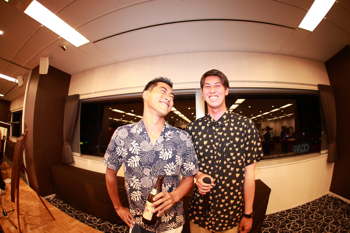 まさかのサイズアップとなった6/8(土)の仙台新港でのフリーセッションを終えると、今度は仙台駅西口からほど近い場所にあるアイルの13階を会場に、いよいよ松岡慧斗の地元、仙台ローカルコミュニティーによる祝賀会がスタートとなった。