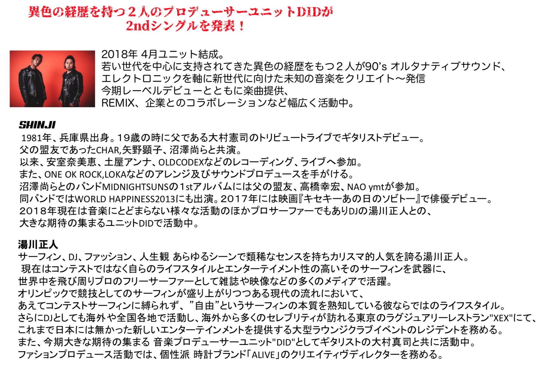 言わずと知れたスーパースター・プロサーファー湯川正人がギタリスト大村真司と組むプロデューサーユニット”DID”がセカンド・シングル”BACK AGAIN ft HIKARU”を6/18(火)にリリース!
