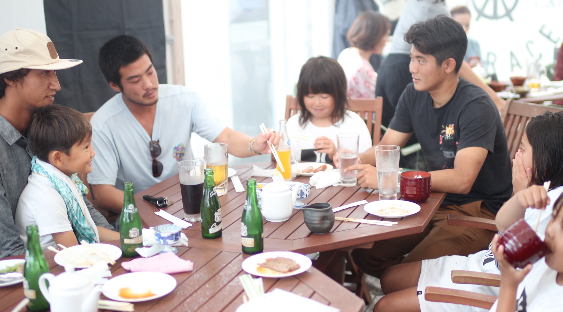 ランチタイムはHURLEY×LM SURFの敷地内にあるレストランでBBQの昼食。
