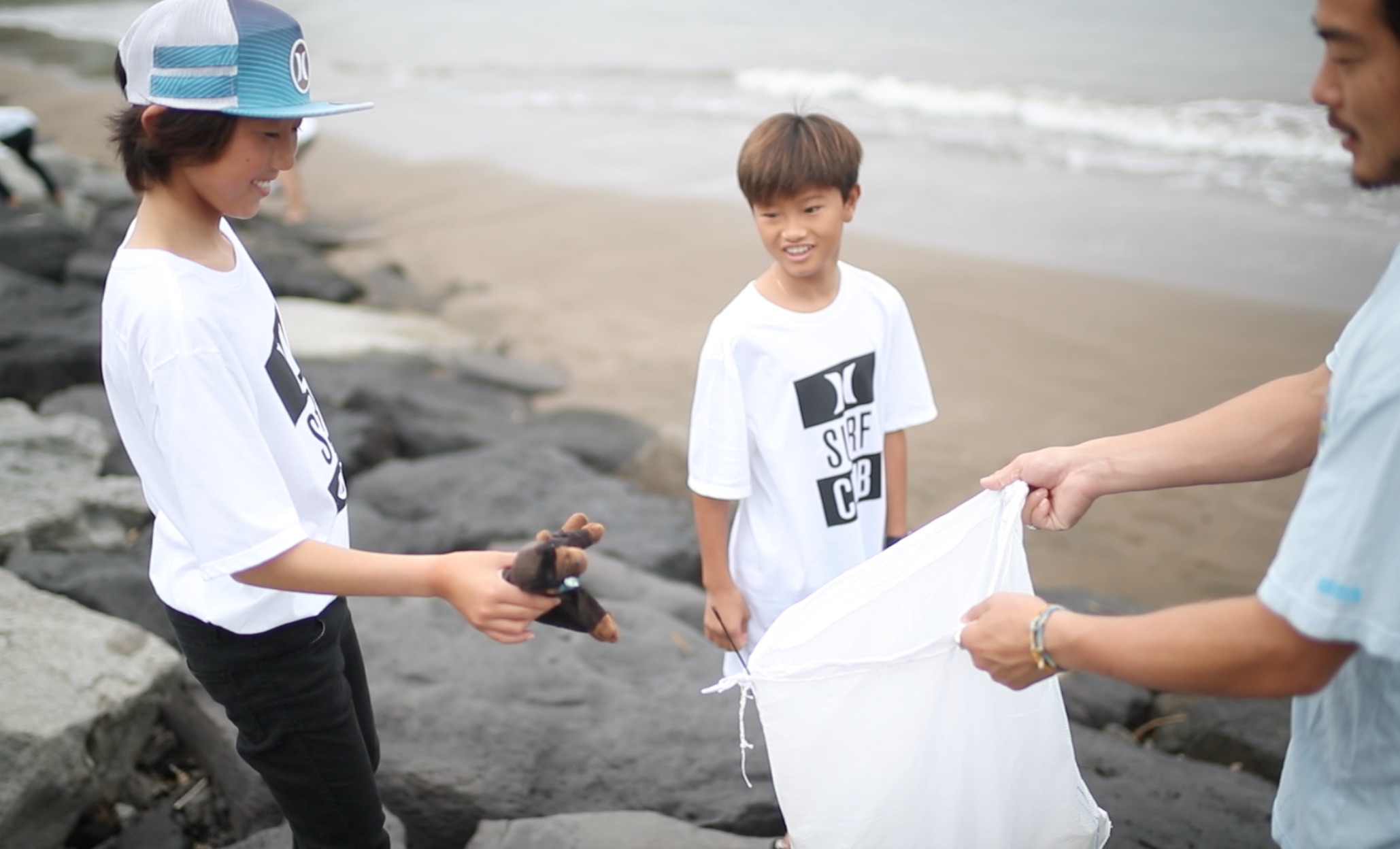 実際にやってみると、このビーチクリーンが思わぬ効果を持っており、プロサーファー達と一緒にゴミを拾うことで自然とコミュニケーションを取ることができることから、いきなりフリーサーフセッションするよりも、ある程度お互い溶け込んだ状態でフリーサーフセッションに突入していたのには驚いた。