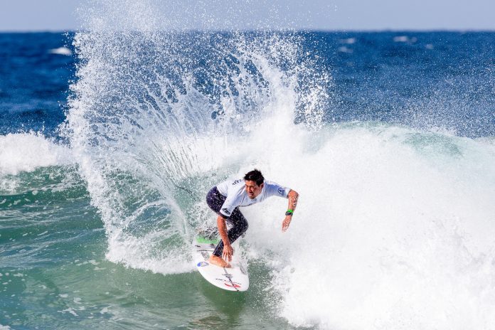 注目の稲葉玲王はラウンドオブ24のヒート7でCTサーファーのWade CarmichaelとJasse Mendesと対戦。