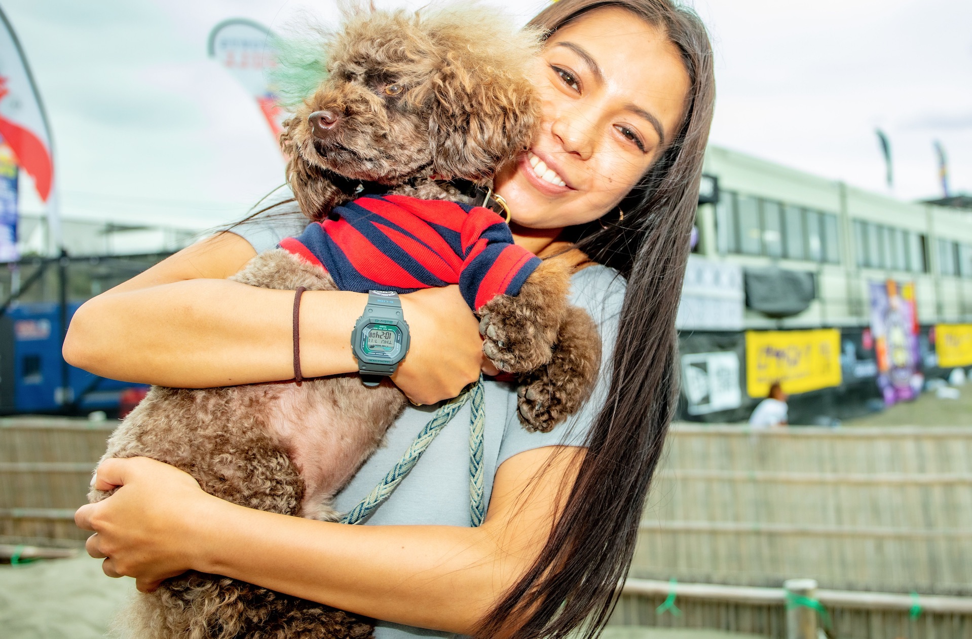 今大会でインタビューワーとしてマイク片手に会場を立ち回るのはプロサーファー水野亜彩子。実はこの鵠沼をホームとするロコガールでもある。Asako Mizuno.