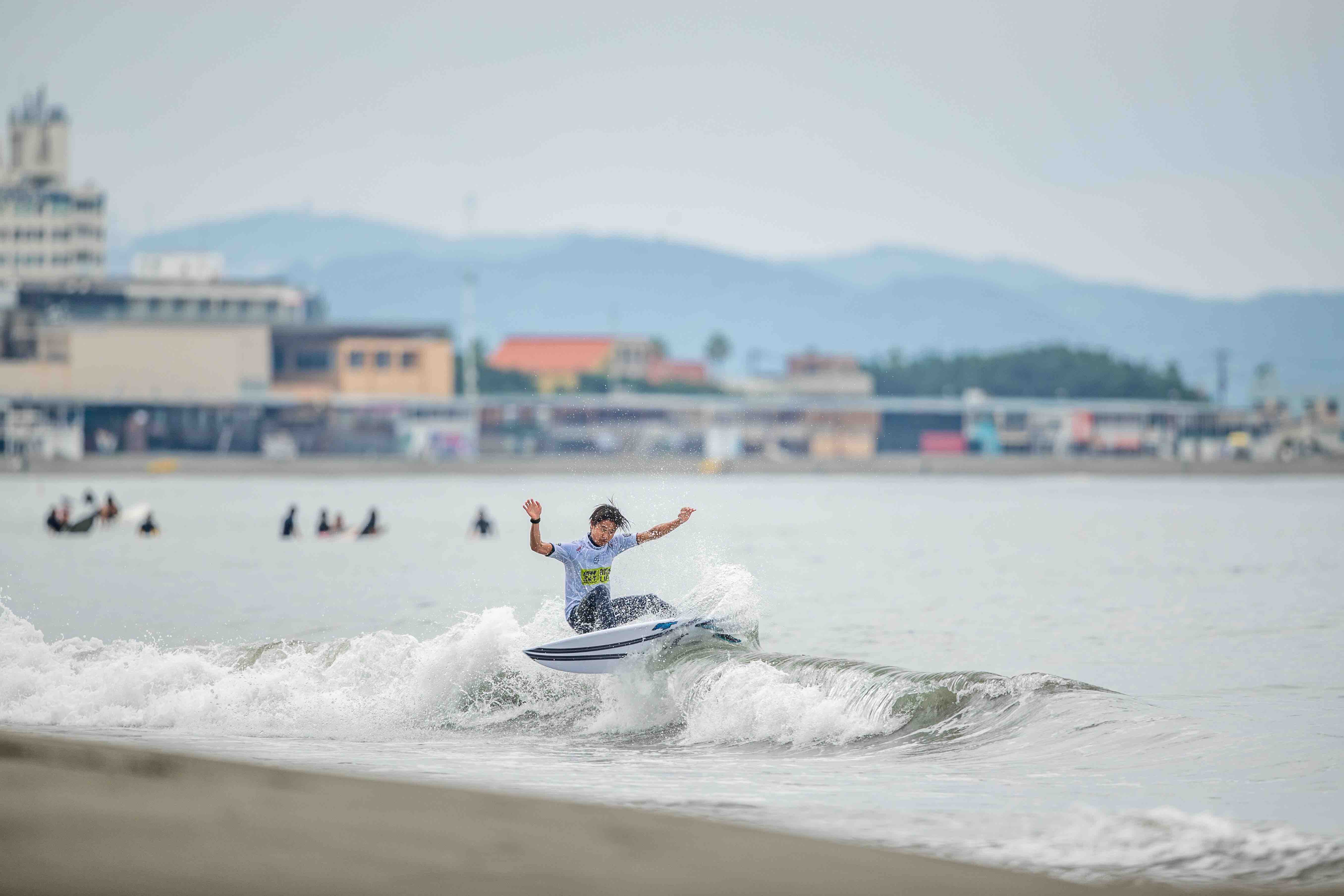 先日静岡で開催されたJOCジュニアオリンピックでは見事優勝を果たし、ISA日本代表選手枠を獲得した鵠沼出身の矢作紋乃丞。このコンディションに苦戦しつつもローカルナレッジを活かし、2位でラウンドアップ。さらなる快進撃に期待したい!!Monnojo Yahagi.