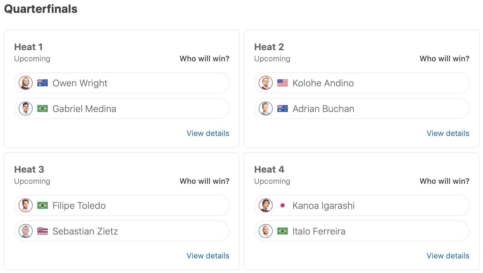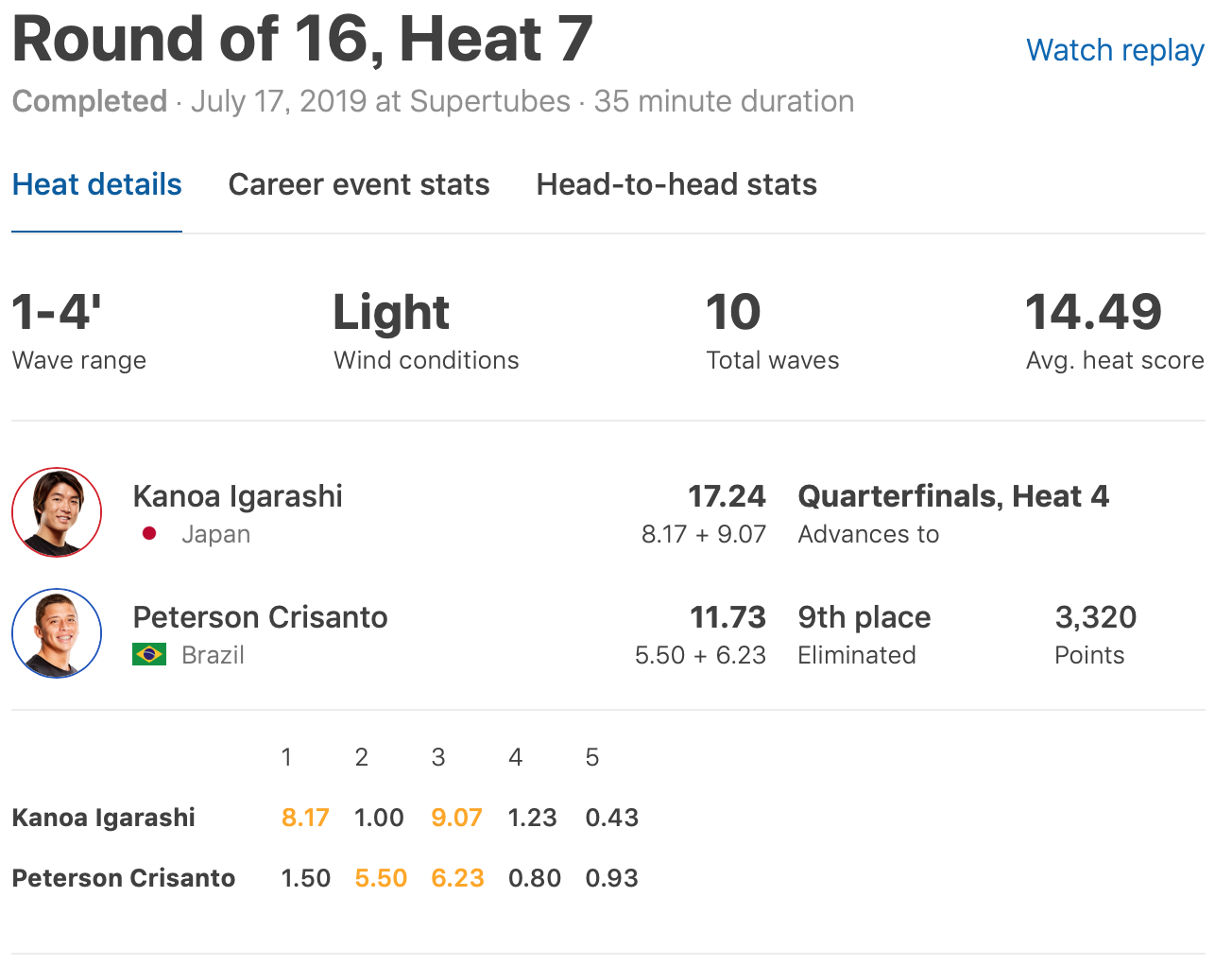 迎えるクォーターファイナルのヒート4ではItao Ferreiraと対戦予定。
