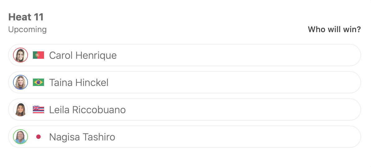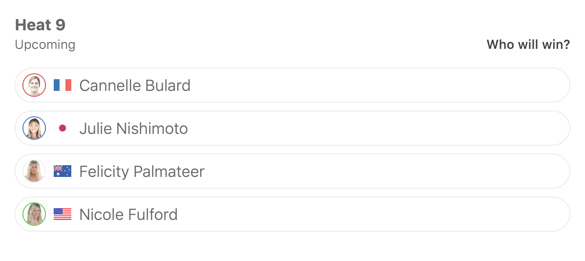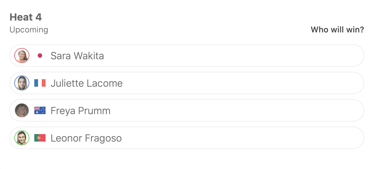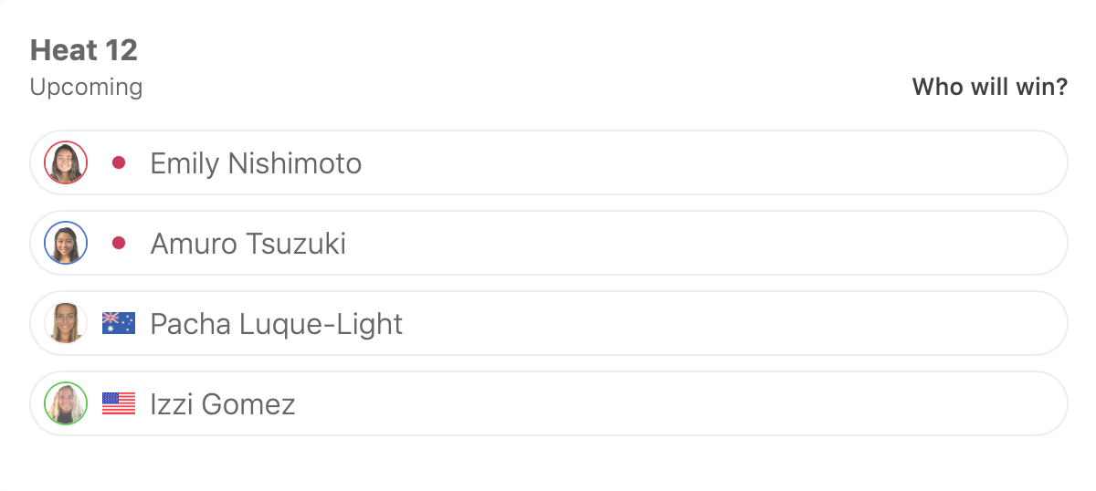 ラウンド1のヒート2に大村奈央、ヒート4に脇田沙良、ヒート7に橋本恋、ヒート9に西元ジュリー、ヒート11に田代凪沙、ヒート12に西元エミリーが登場。