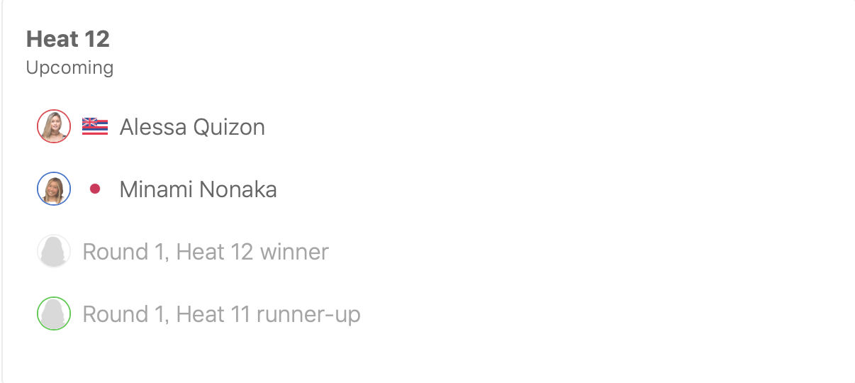 さらにラウンド2のヒート2に川合美乃里、ヒート6に黒川日菜子、ヒート12に野中美波が出場。