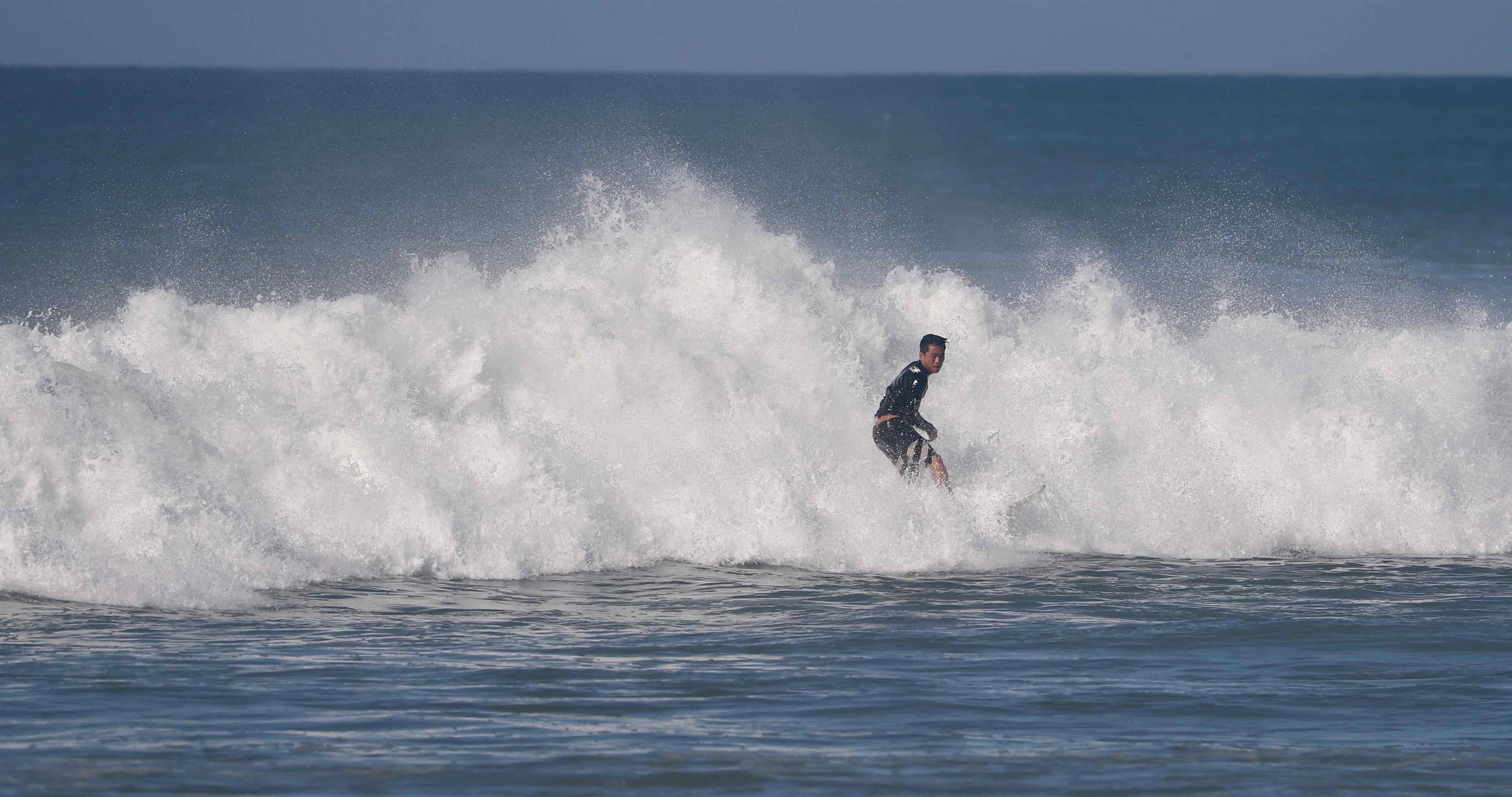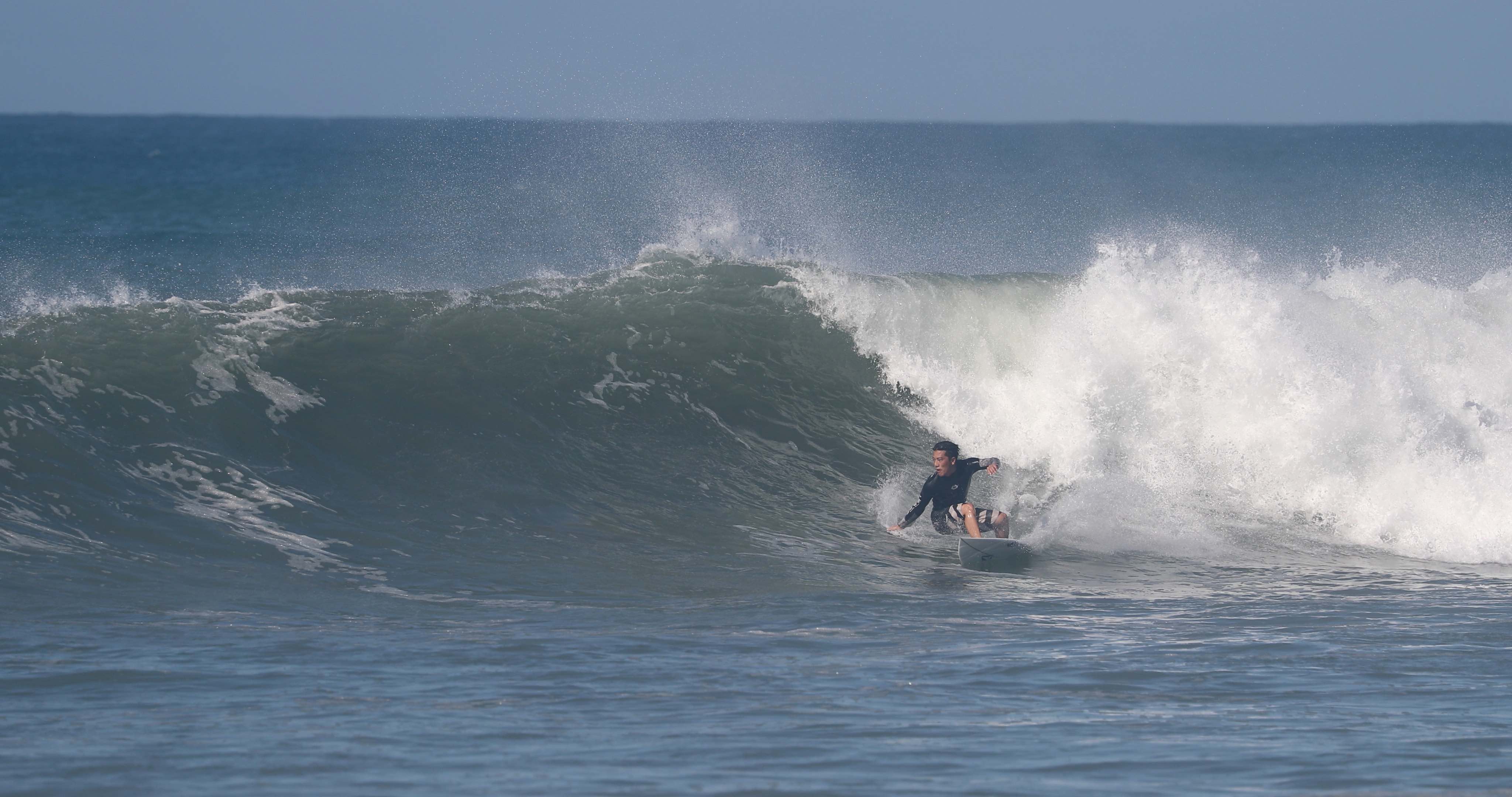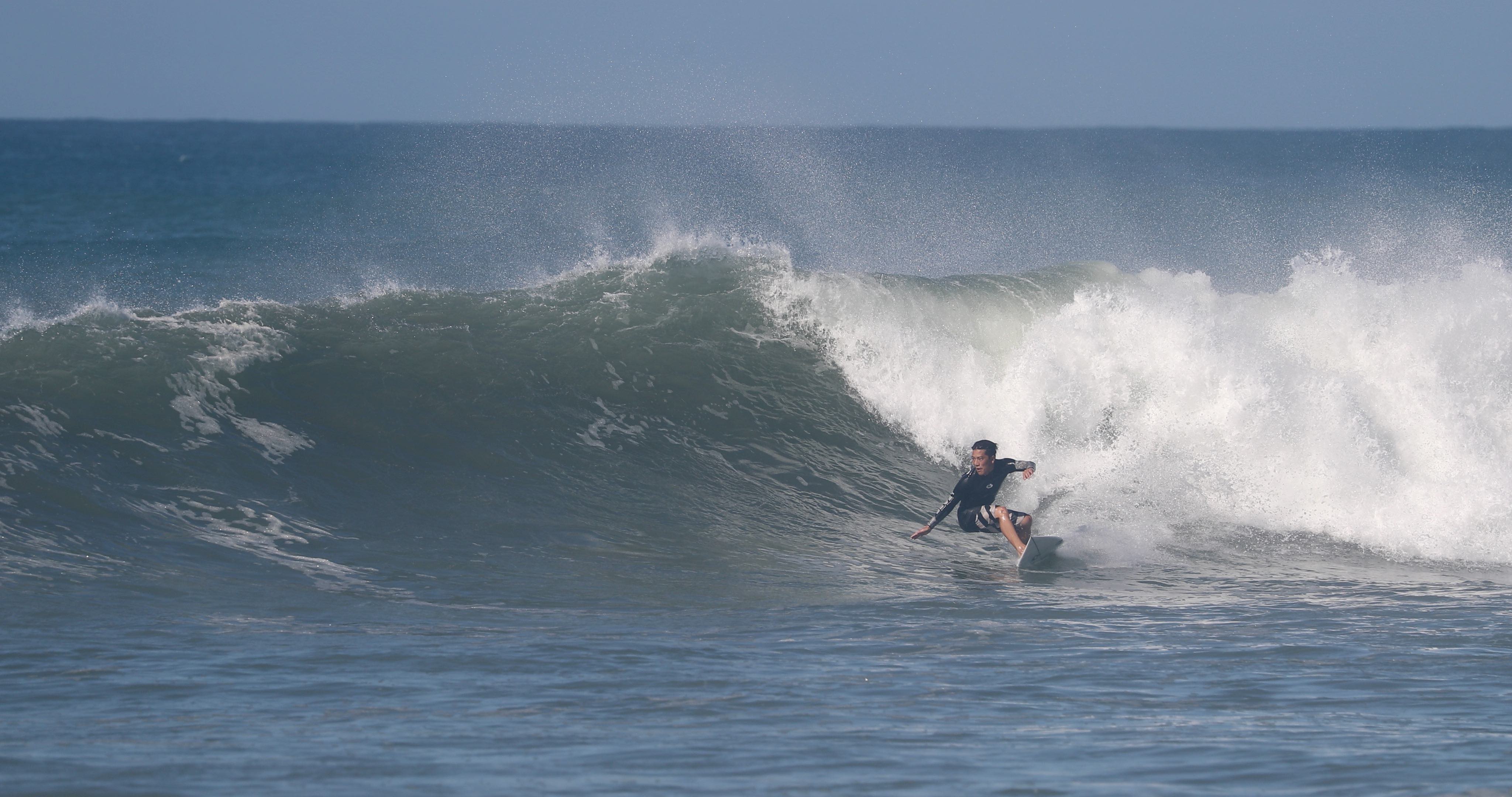 たどり着いたその先で、ハワイのハレイワのような水量の多いダイナミックなストロークの波に遭遇!