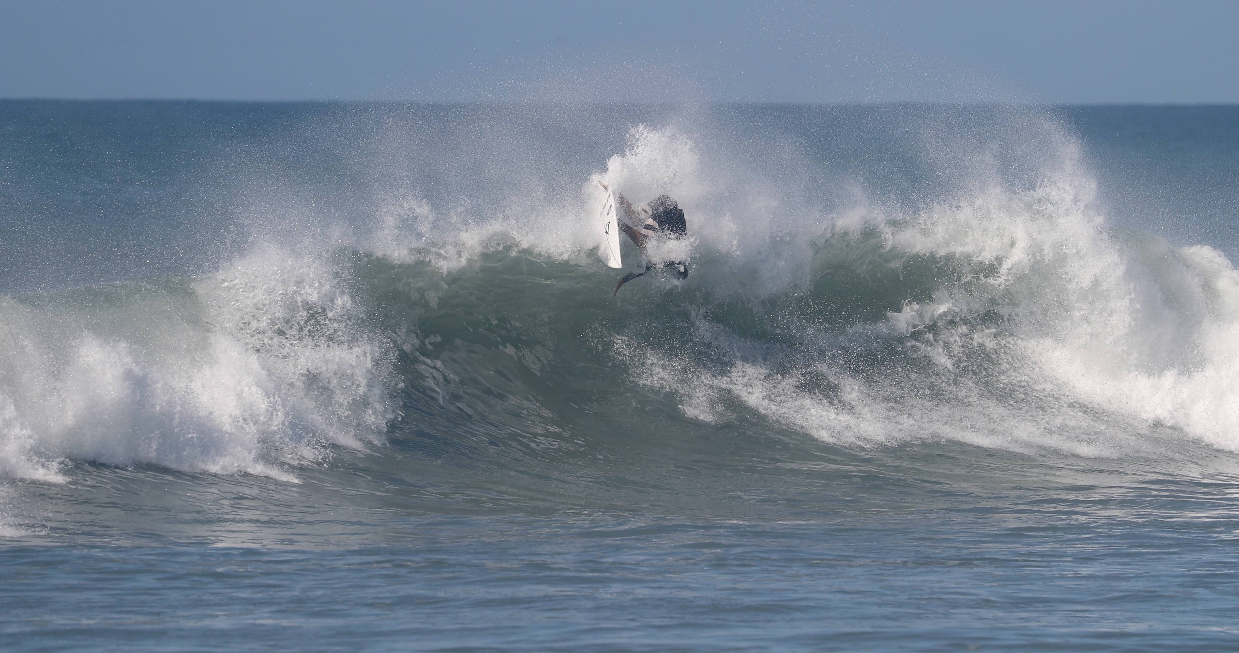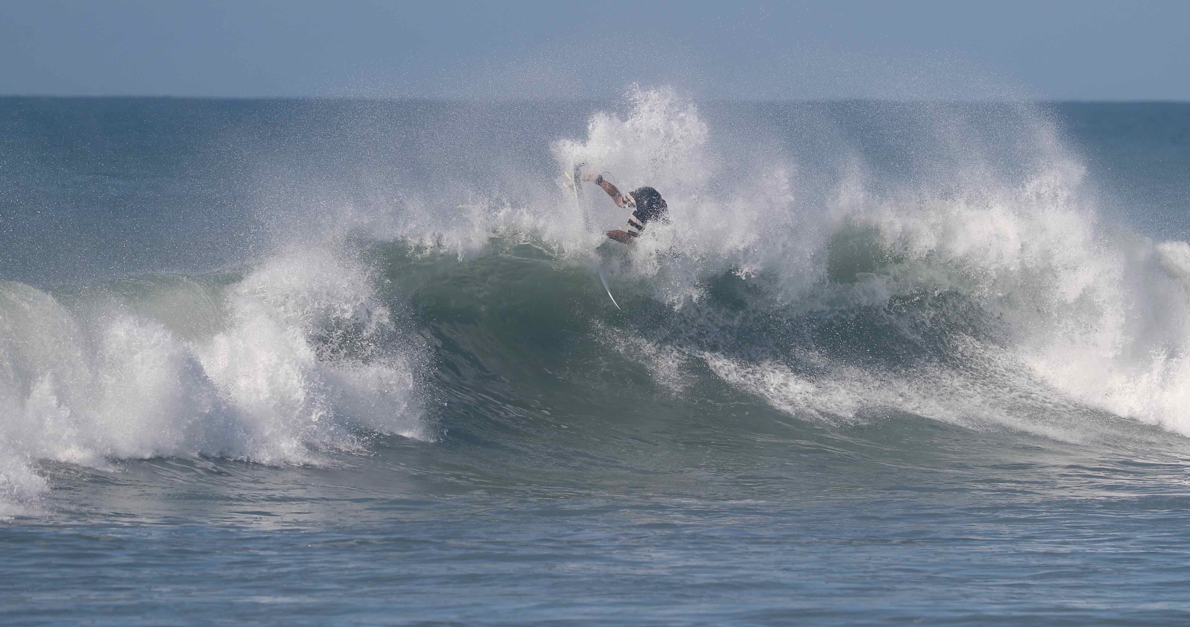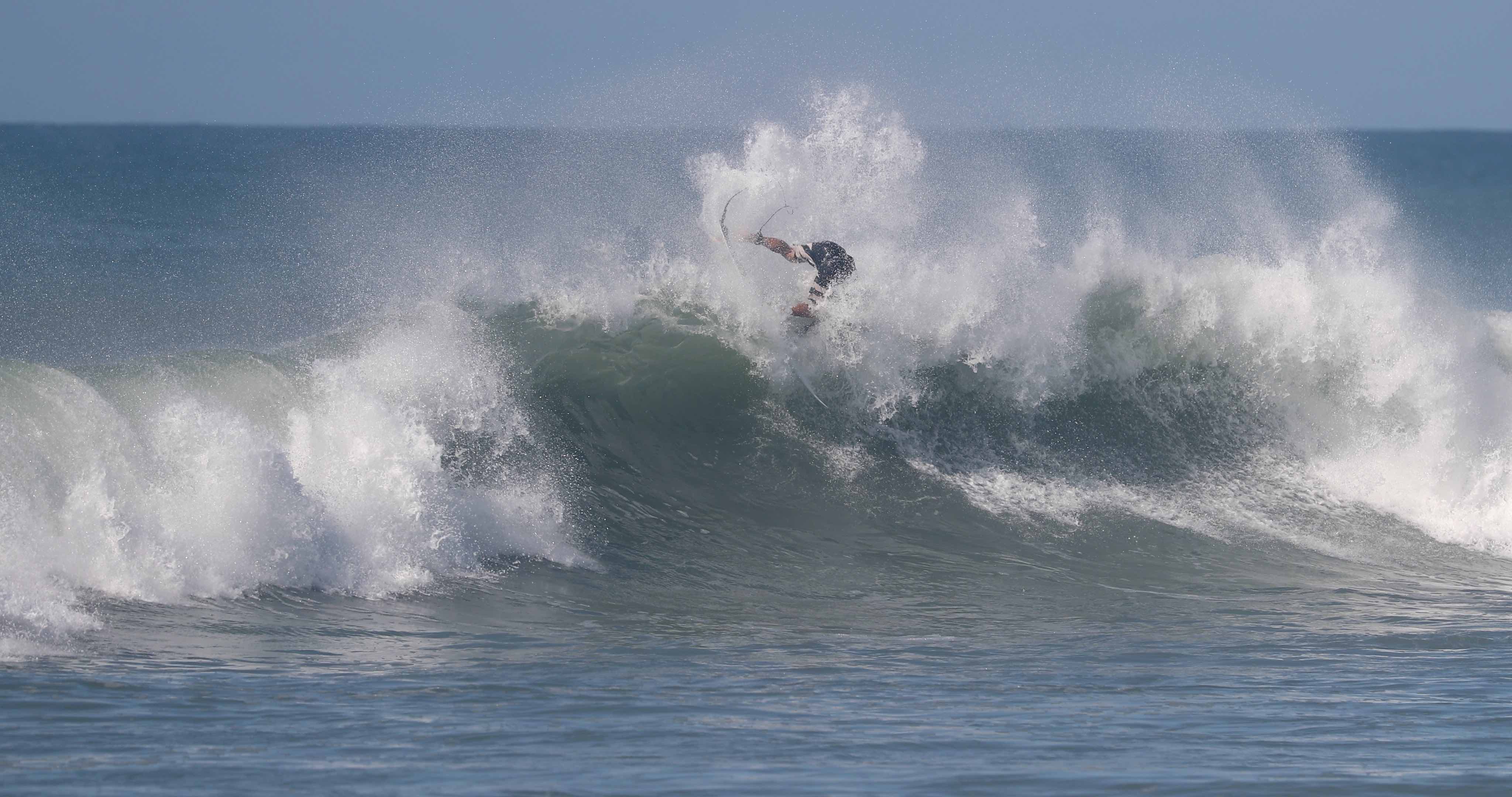 ビッグターンを描くことが可能なグッドコンディションに恵まれた中、今や日本を代表するトッププロサーファーとしてシーンをリードし、大きな影響力を持つ村上舜が、パワフルなクローズアウトセクションのフィニッシュで魅せた、この日のベストシークエンスとなる無重力バックサイド・フィンズフリー・リップスライドのシークエンスをお届け!!