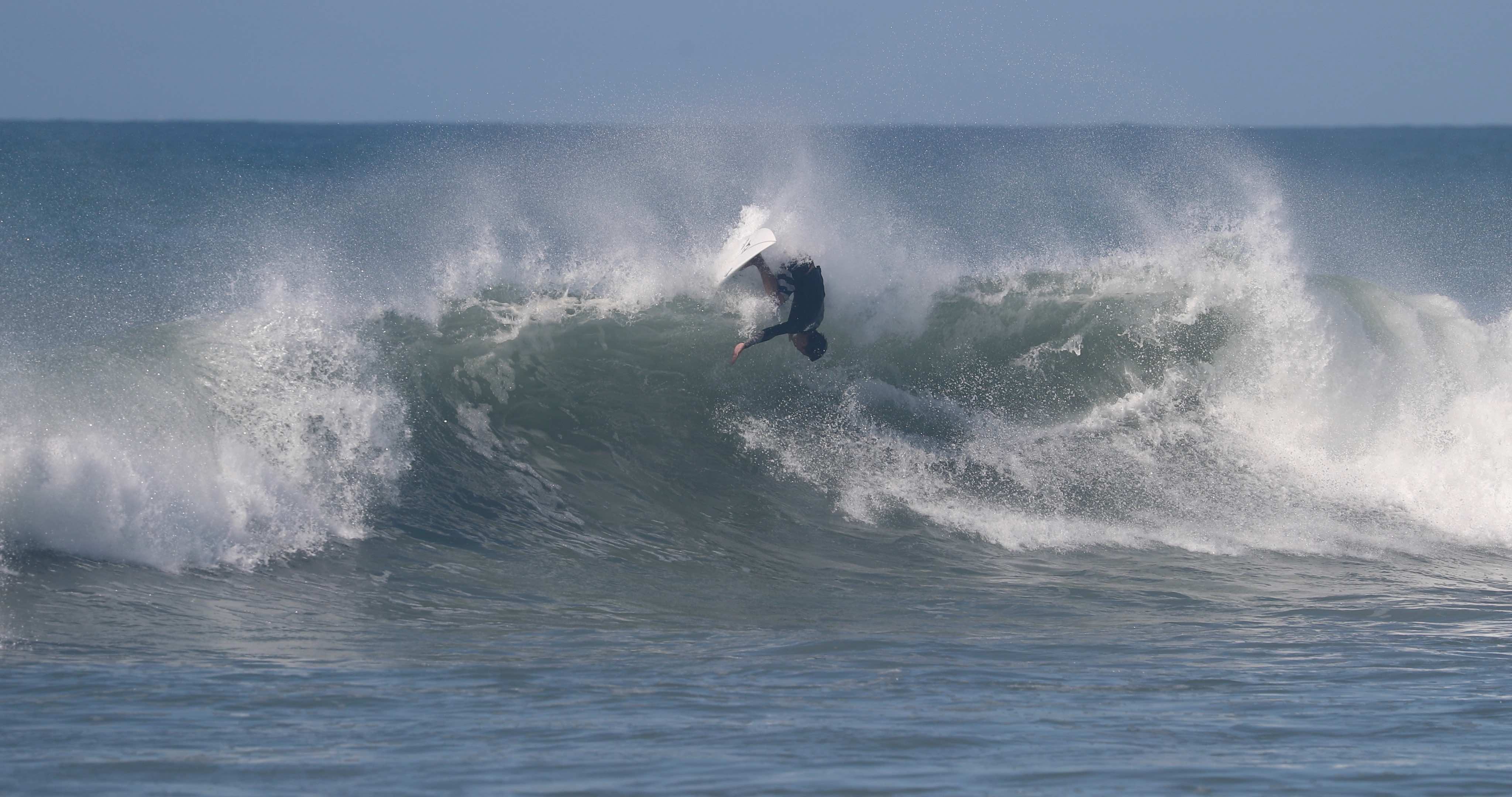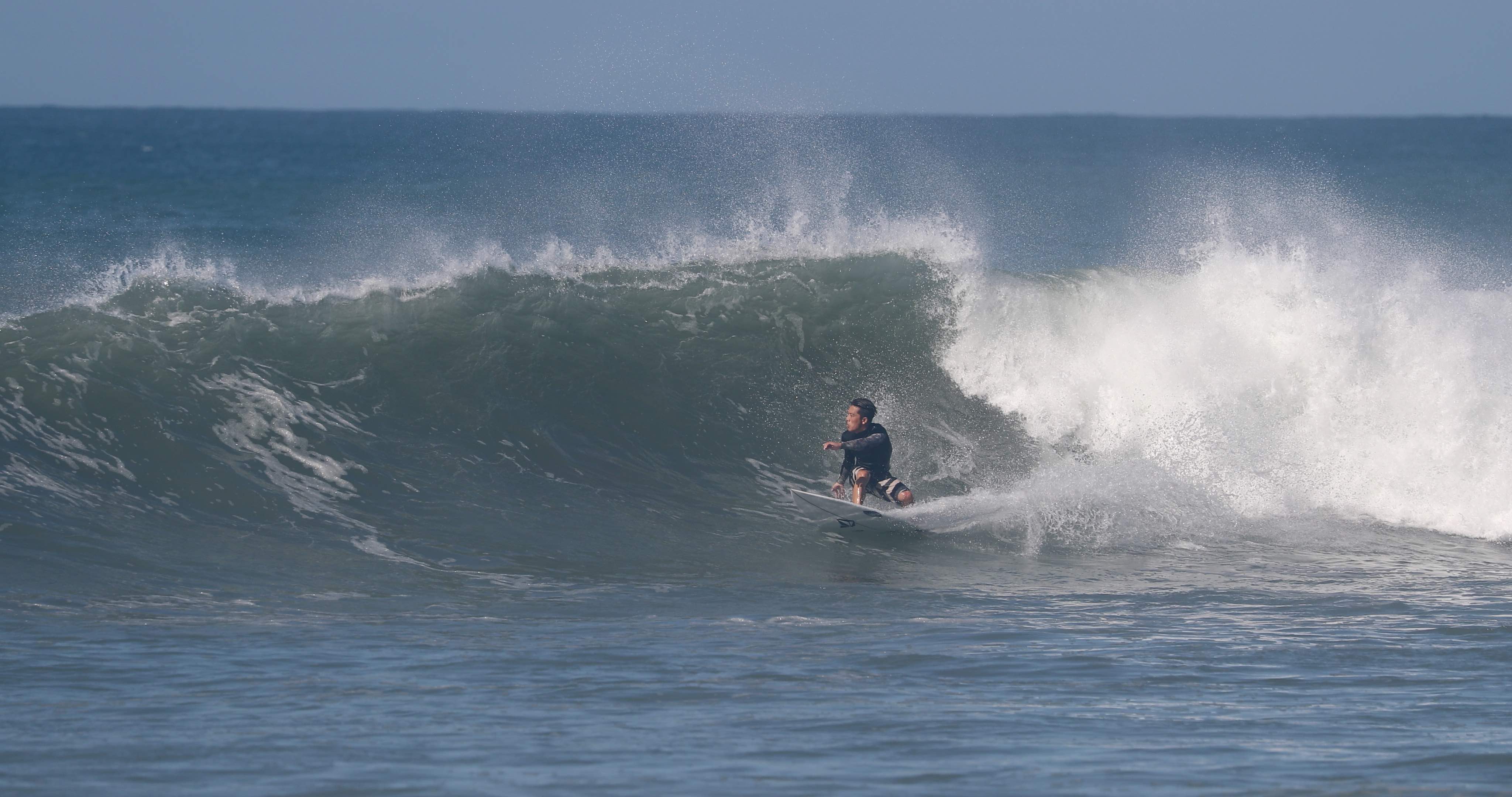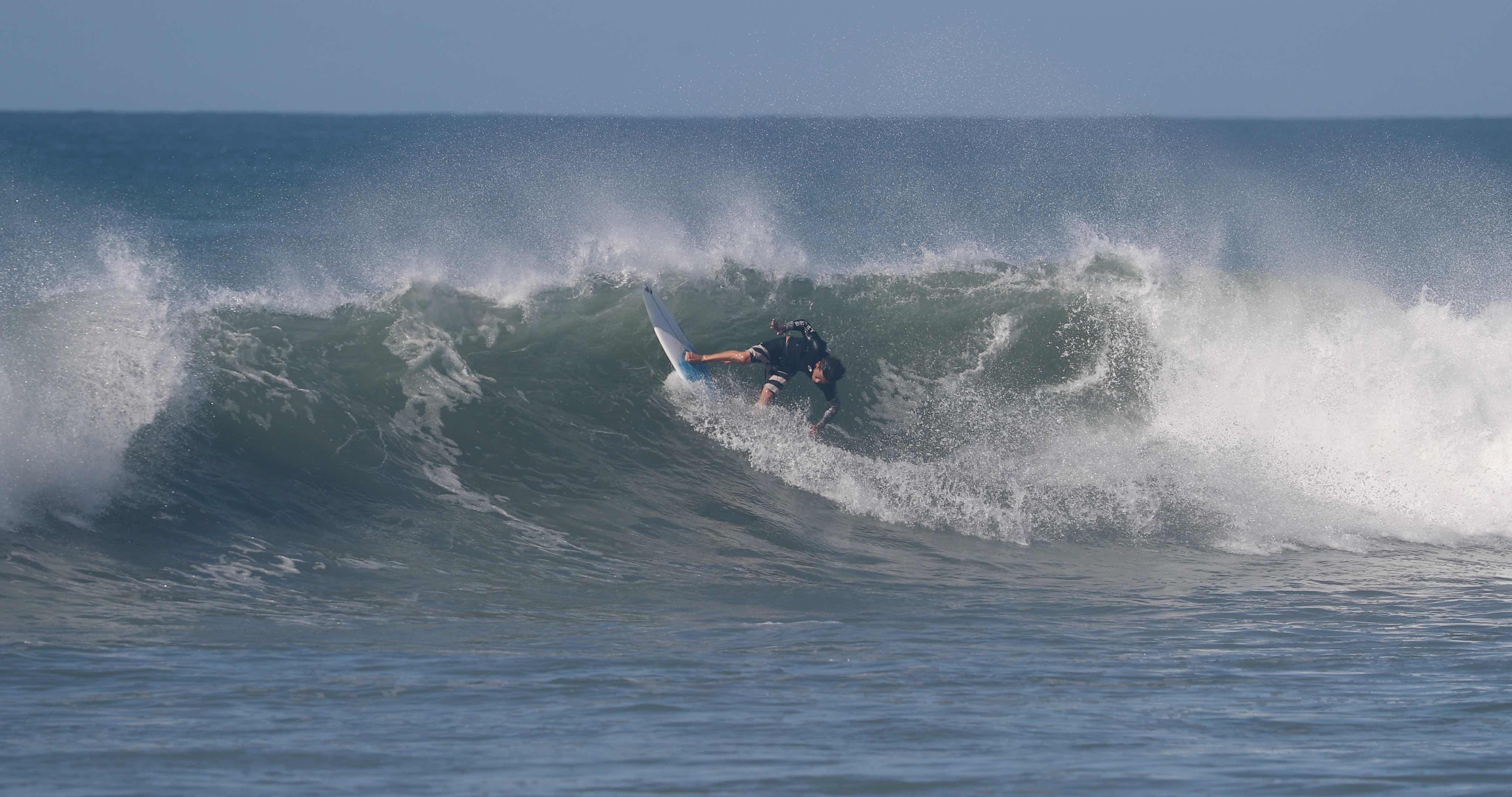 ビッグターンを描くことが可能なグッドコンディションに恵まれた中、今や日本を代表するトッププロサーファーとしてシーンをリードし、大きな影響力を持つ村上舜が、パワフルなクローズアウトセクションのフィニッシュで魅せた、この日のベストシークエンスとなる無重力バックサイド・フィンズフリー・リップスライドのシークエンスをお届け!!