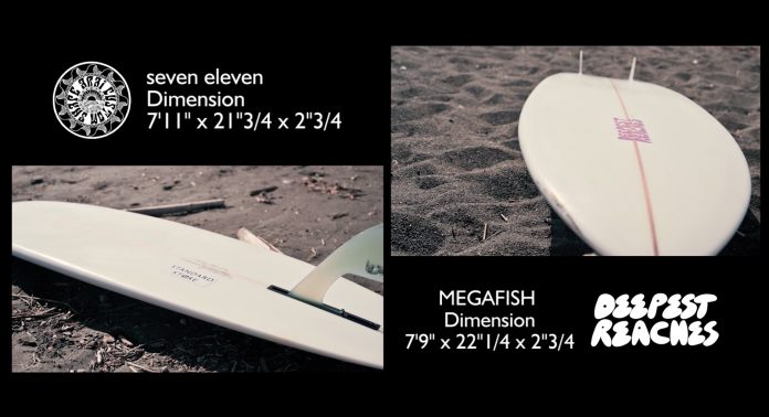 日本人シェイパーAC SHAPEの”SEVEN ELEVEN”モデル(7’11” × 21”3/4×2”3/4)とカリフォルニア産のDEEPEST REACHのMEGA FISHモデル(7’9”×22”1/4×2”3/4)といったミッドレングス2本を茅ヶ崎に住むサーファータカ君とSTANDARD STOREボスの巽氏の2名がテストライド!