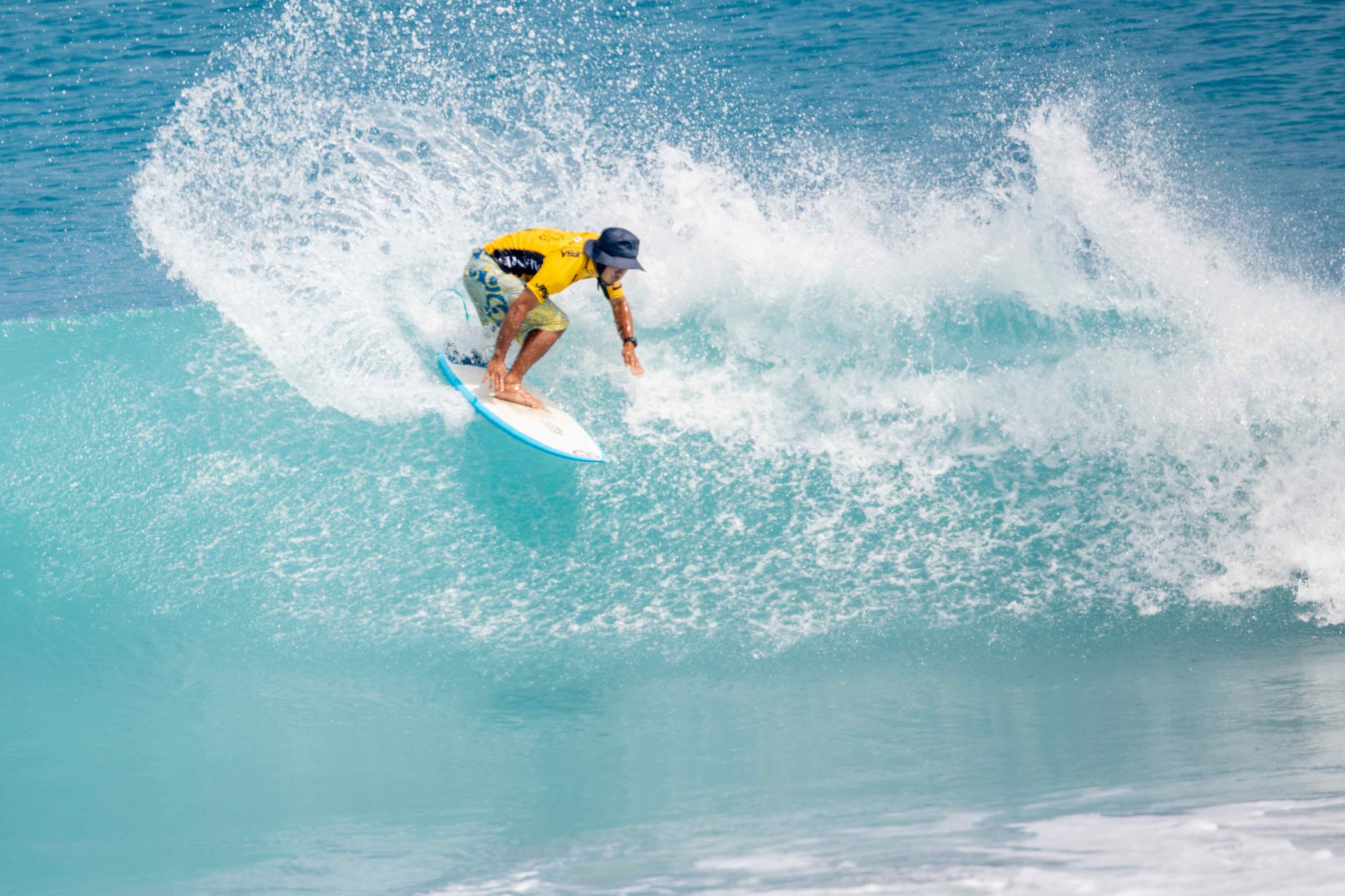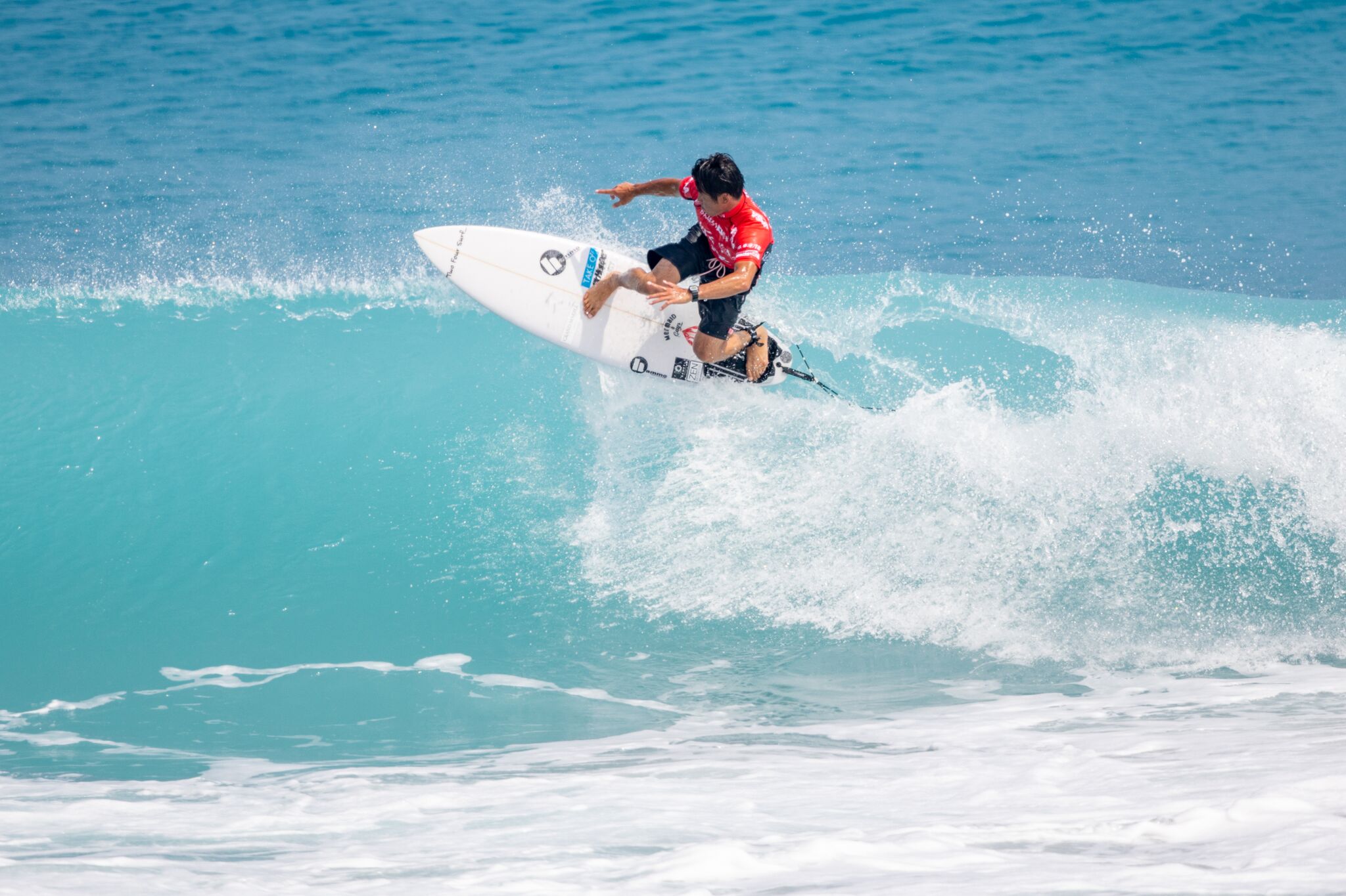 昨年はあとグランドチャンピオン争いに食い込んだ実力派プロサーファー高橋健人は、MENSクォーターファイナルのヒート1で鈴木仁と対戦予定。Kent Takahashi.