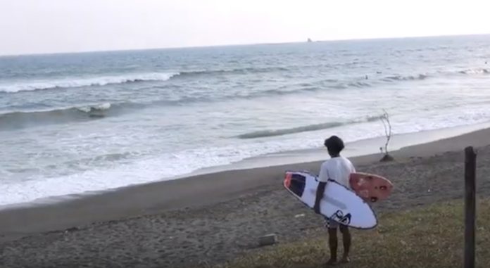 台風11号からのグランドスウェルがかすかに届きはじめ、オンショアながら胸肩前後までサイズアップを果たした8/25(日)の湘南エリア。