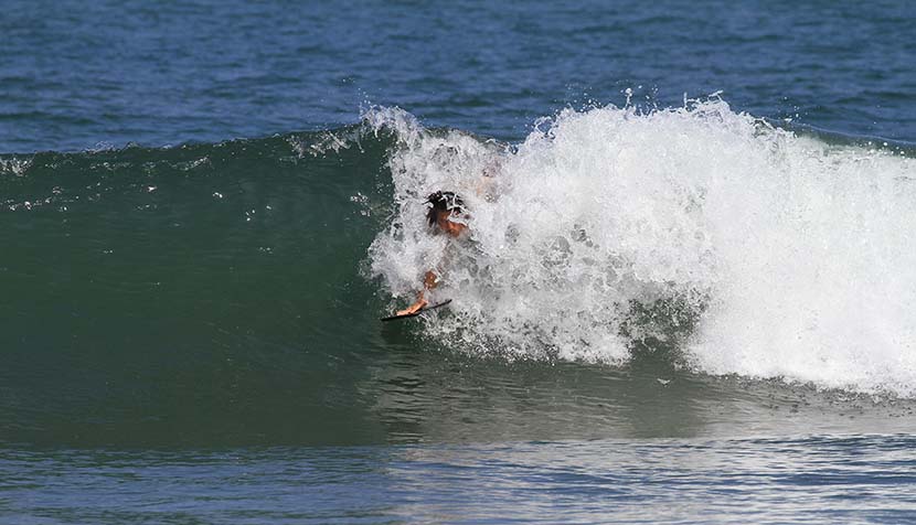 足ヒレをつけて波に乗ってみると、それが意外とボディーサーフィンには適したロッカーだったようで、ハンドプレーンの代表品としては十分だった模様。