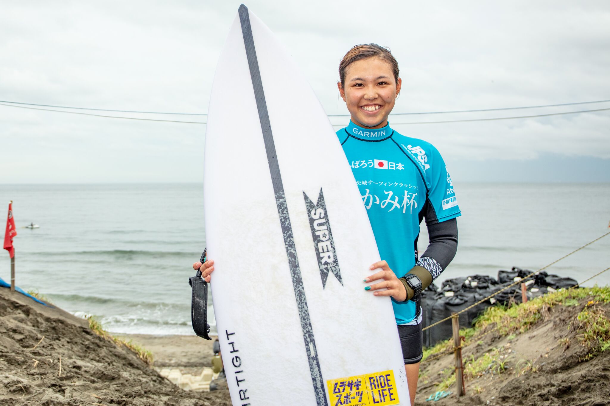 今大会で見事プロ資格を獲得し、プロ本戦ラウンド1のヒート1を見事1位でラウンドアップを果たした浅羽美波。その活躍に注目!Minamia Asaba.