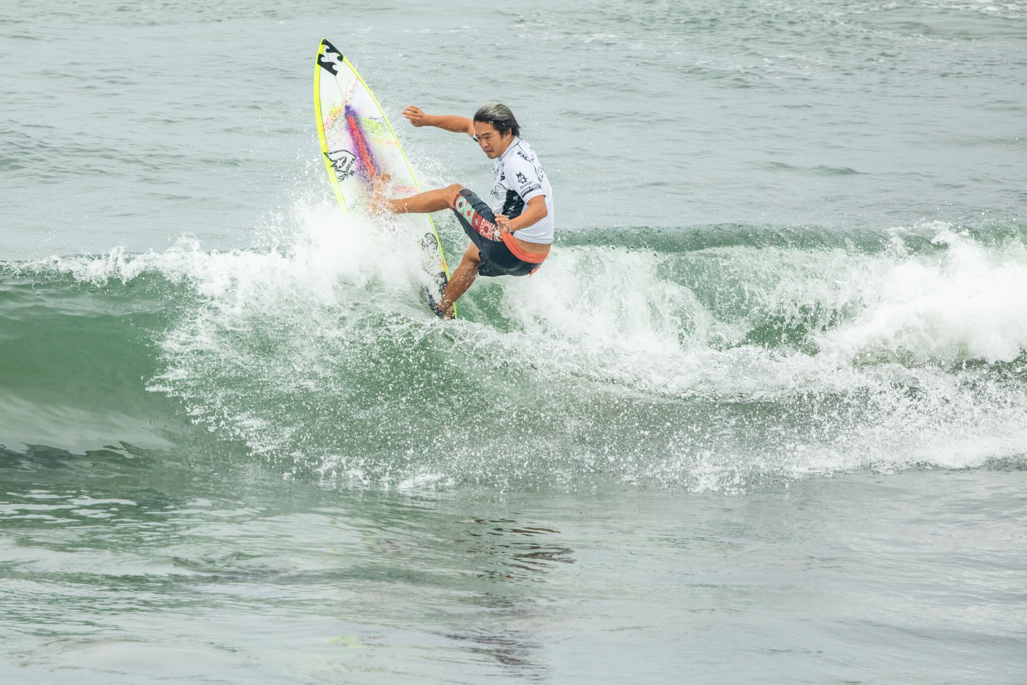 現在は湘南に拠点を置き、Beach Cultureで働きながらプロサーファーとしての活動にも余念がない岩淵優太。地元茨城で開催の今大会ではいつも以上に気合が入っているに違いないだろう。さらなる活躍に期待!Yuta Iwabuchi.