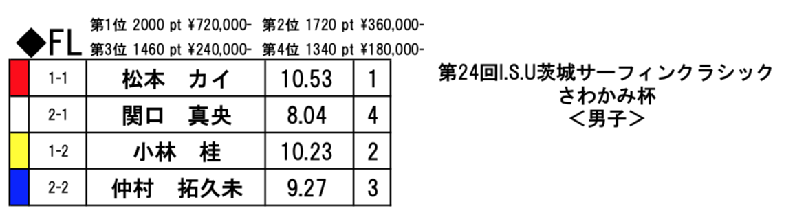 連日のスモールコンディションに悩まされた今大会であるが、大会最終日はその中でも若干サイズアップしたコンディションに恵まれた。
