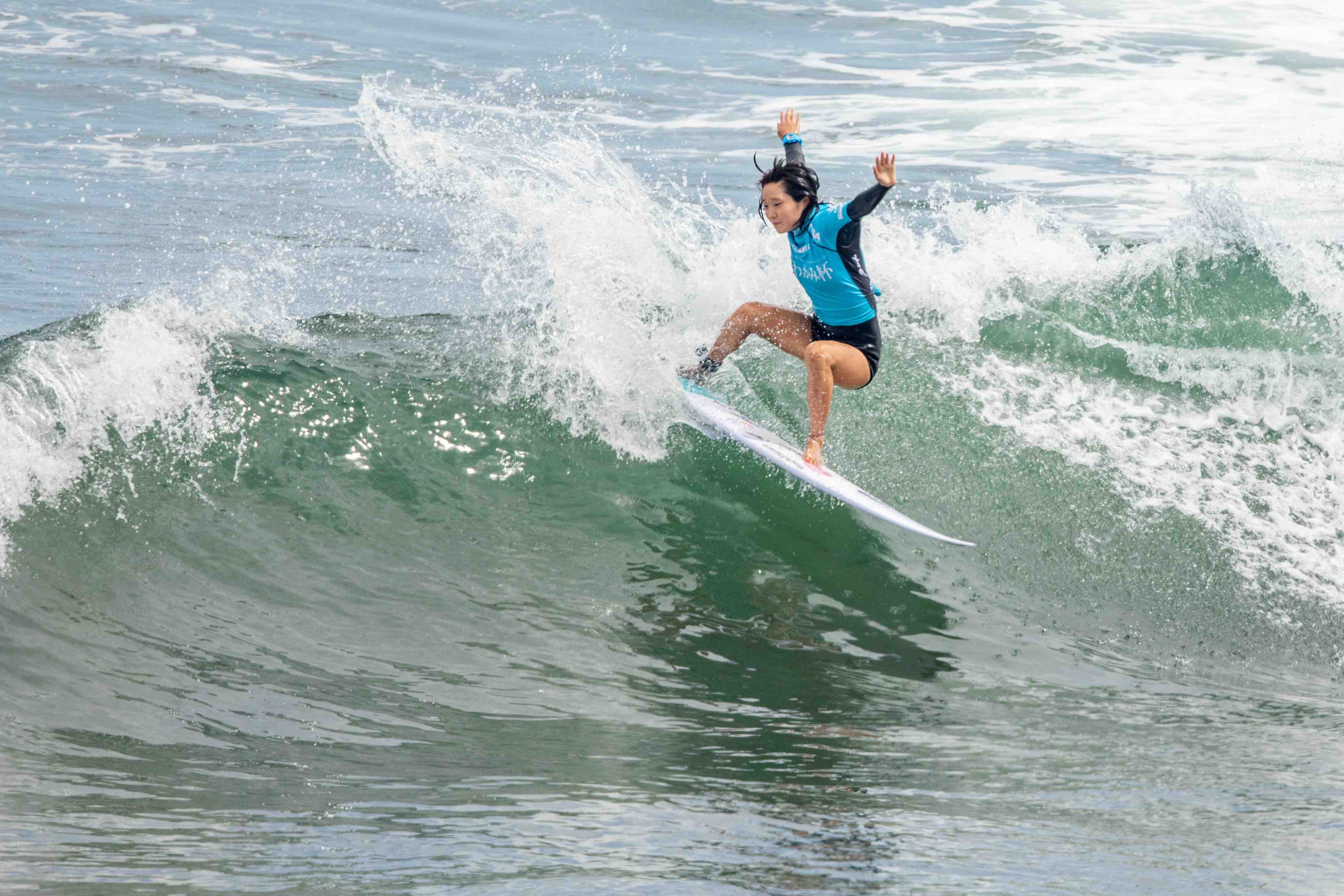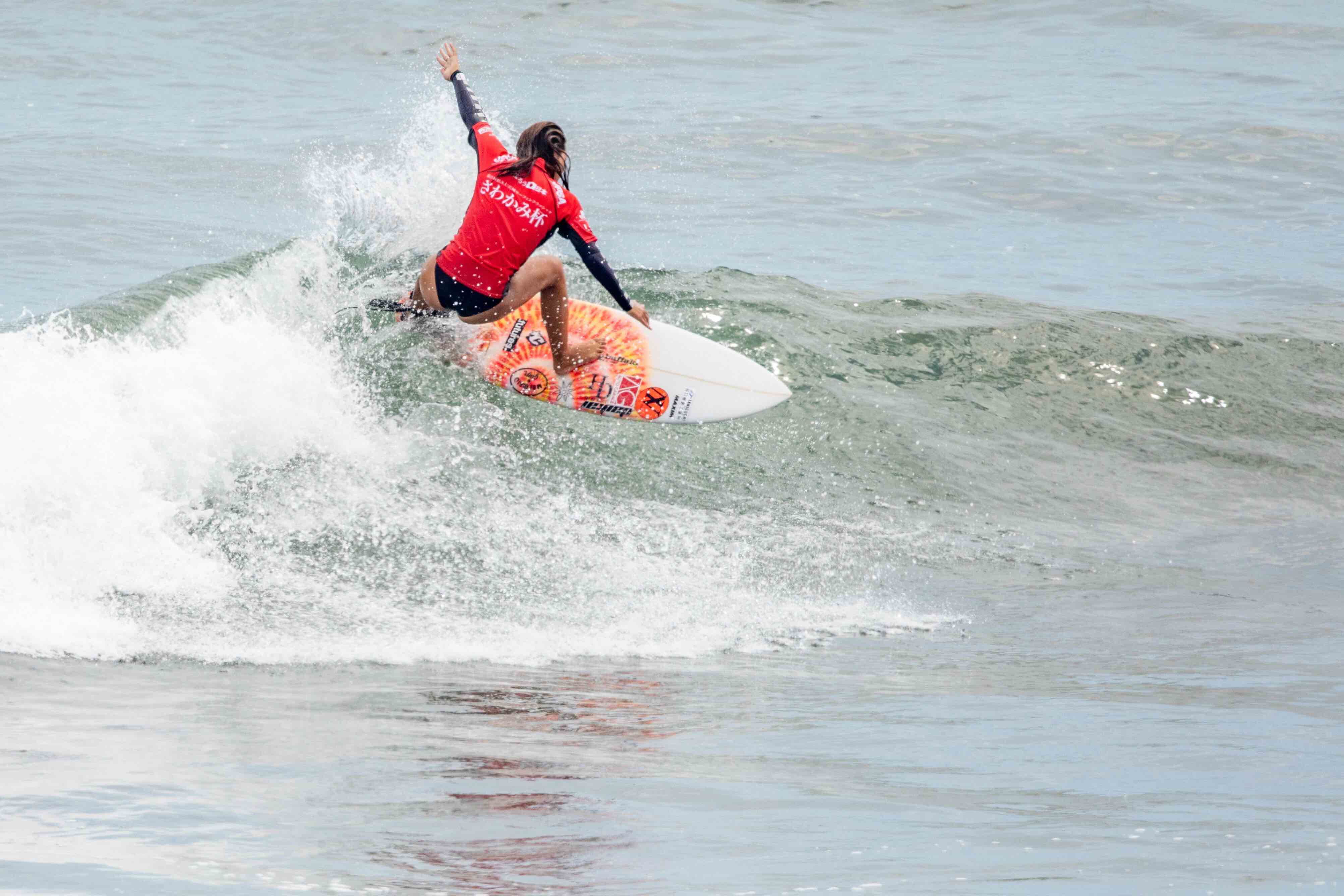 7月に鵠沼で行なわれたQS1500″ムラサキ湘南オープン”で優勝を遂げた実弟・鈴木仁にパワーをもらったかのごとく、今シーズン初となるファイナル進出を果たした鈴木姫七。Himena Suzuki.