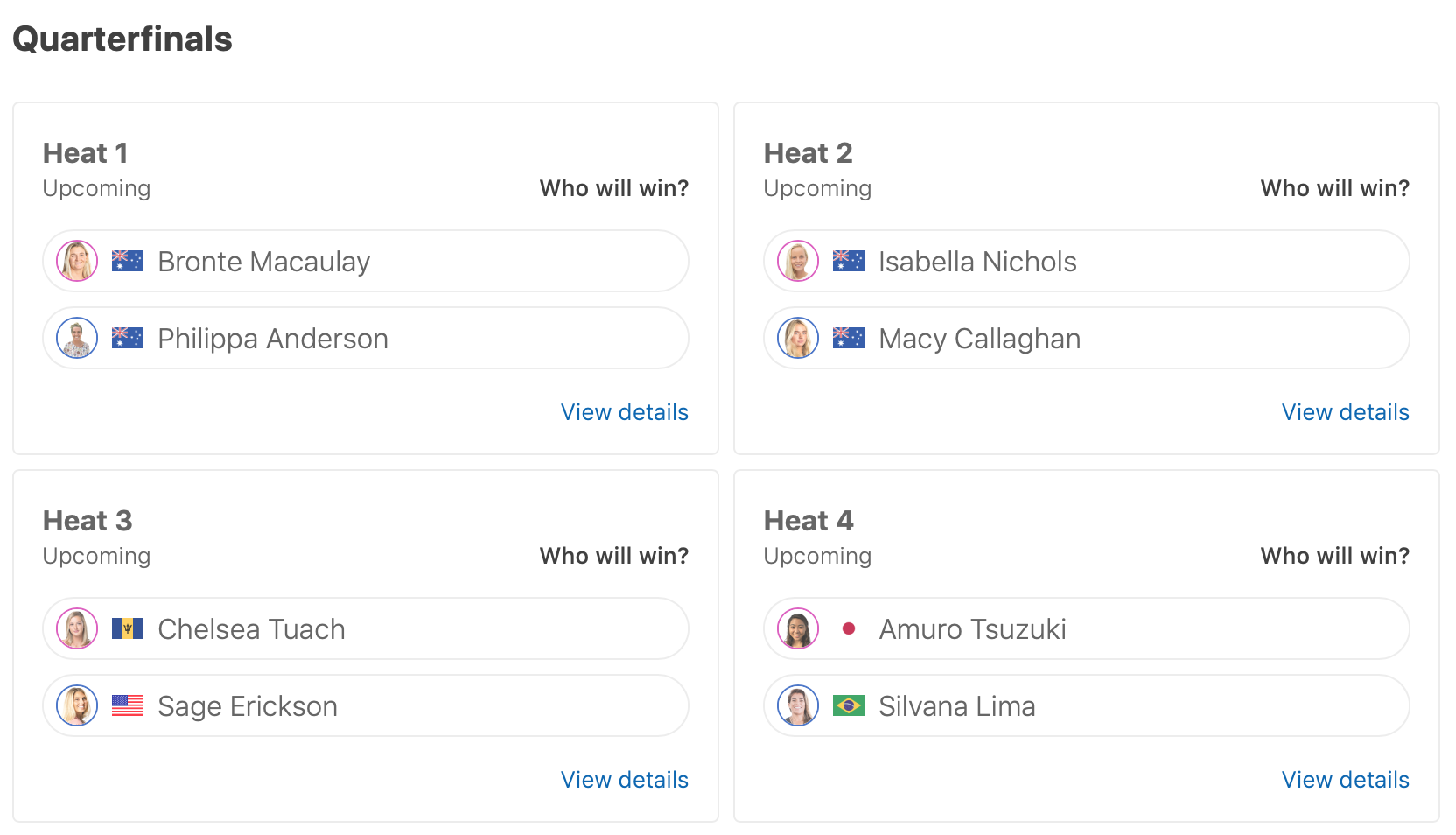 迎えるWOMENSクォーターファイナルでは、ヒート4で都筑有夢路とSilvana Limaが対戦予定。