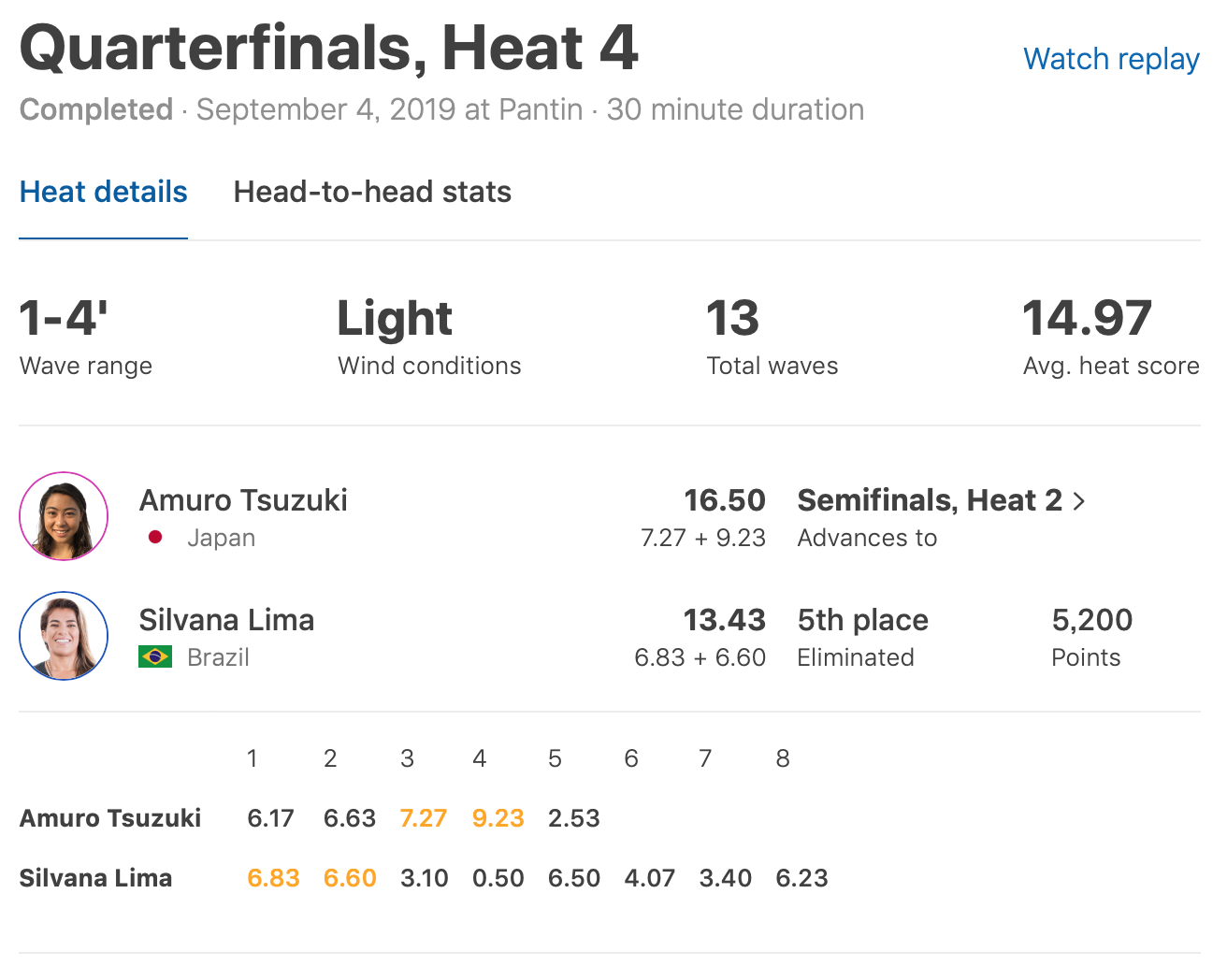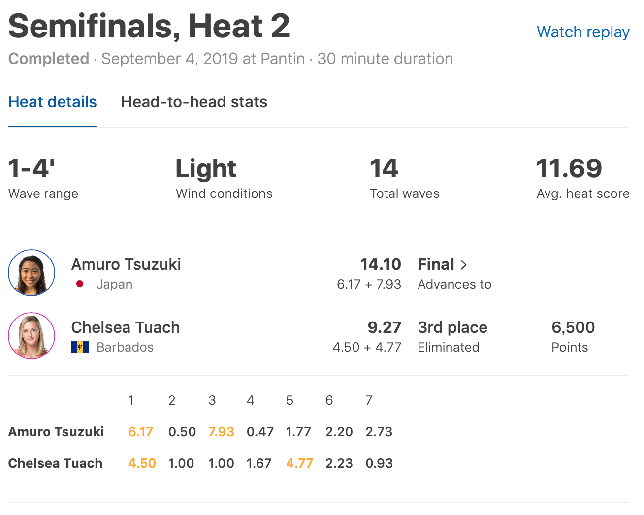 さらにセミファイナルでは、元CTサーファーのChelsea Tuachを抑えてファイナルへ進出!