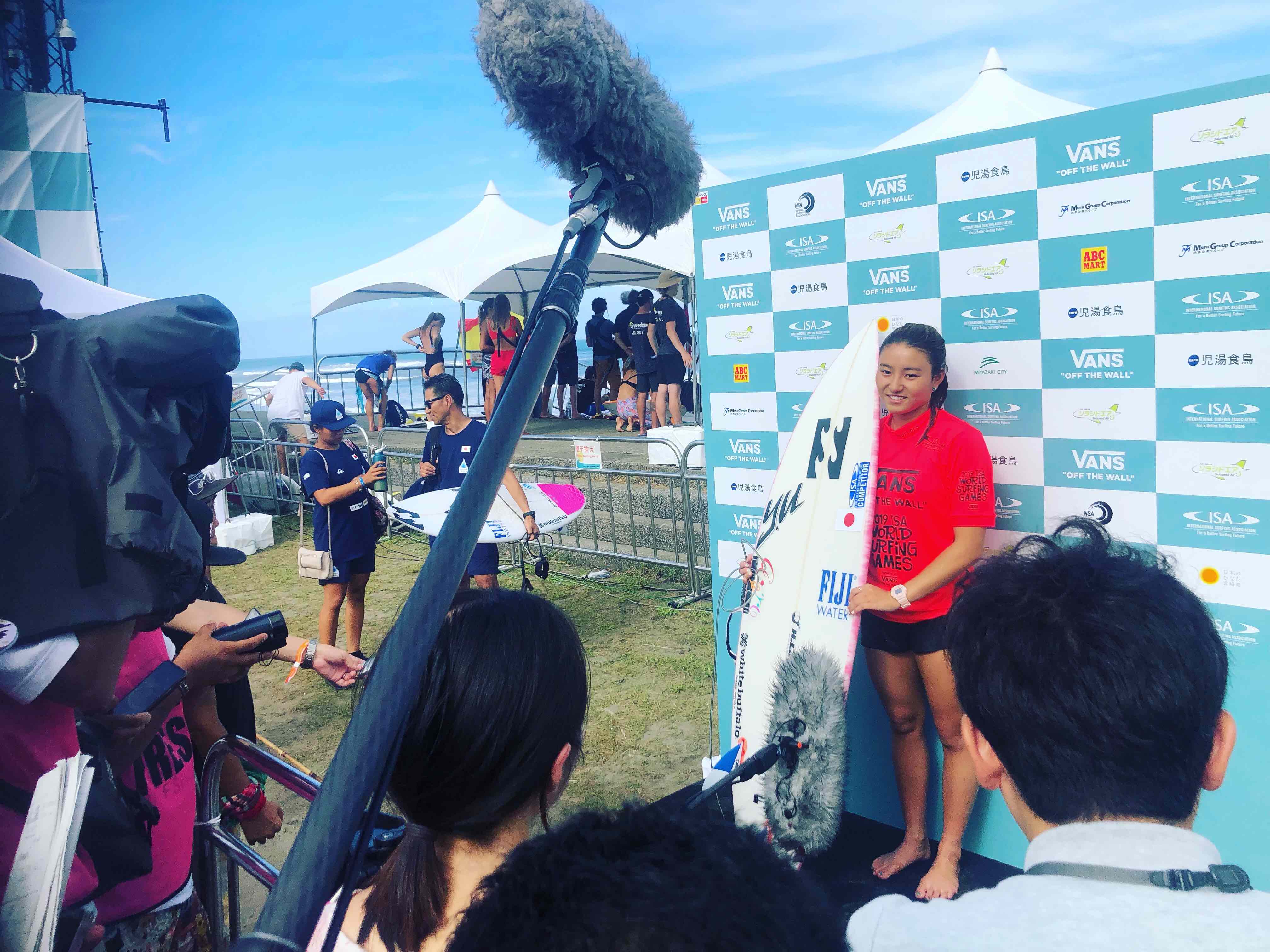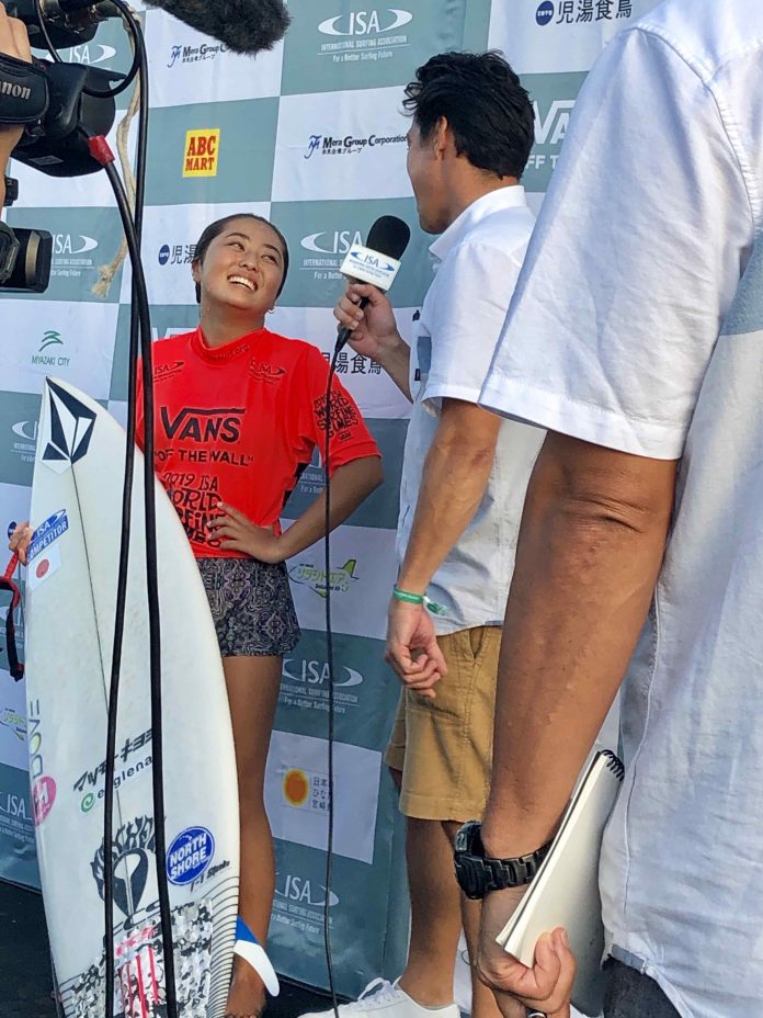 さらにもう1人のWOMENS日本代表選手である前田マヒナはラウンド1のヒート20でDominic Barona(ECU)、Rachel Mead(SUI)と3人ヒートとなっており、迎える9/8(日)のコンテストDAY2の1発目のヒートとして行われる予定。