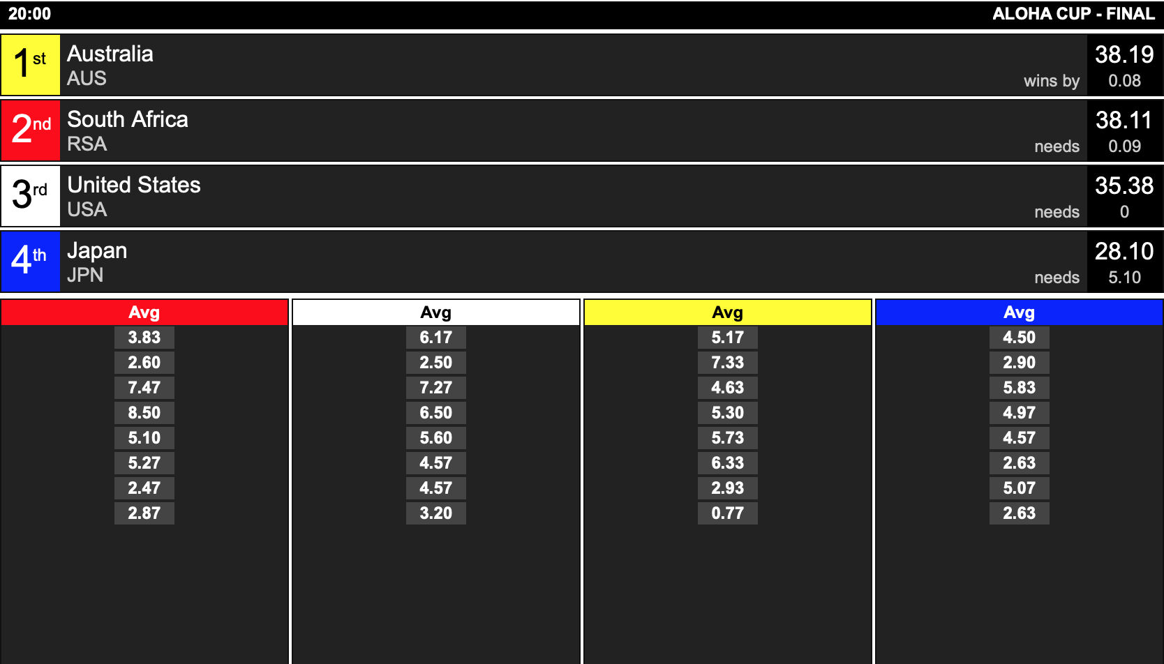 1チーム男女各2名ずつの合計4名で構成され、45分間のヒート時間の間に各選手が2本ずつ波に乗り、その合計点を競い合うというユニークな形式が採用された本イベントには、2018年のISA World Surfing Gamesにおける上位8位までのチームに参加資格が与えられ、今回は2018年に伊良湖で開催された本イベントで初となる国別団体金メダルを獲得した日本代表チームをはじめ、アメリカ、オーストラリア、南アフリカ、フランス、ペルー、アルゼンチン、スペインの8カ国が参加。