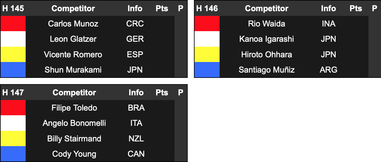 日本代表選手では唯一メインラウンド3を勝ち上がり、メインラウンド4ではFilipe Toledoを抑えて見事1位でラウンドアップを果たしたが、迎えたメインラウンド5では全くいい波を掴むことができず、ここで敗退。リパチャージラウンド8へと駒を進め、ヒート2で同じ日本代表選手である大原洋人と2018年ISA金メダリストのSantiago Muniz、インドネシアの和井田理央と対戦予定となっている。Kanoa Igarashi.