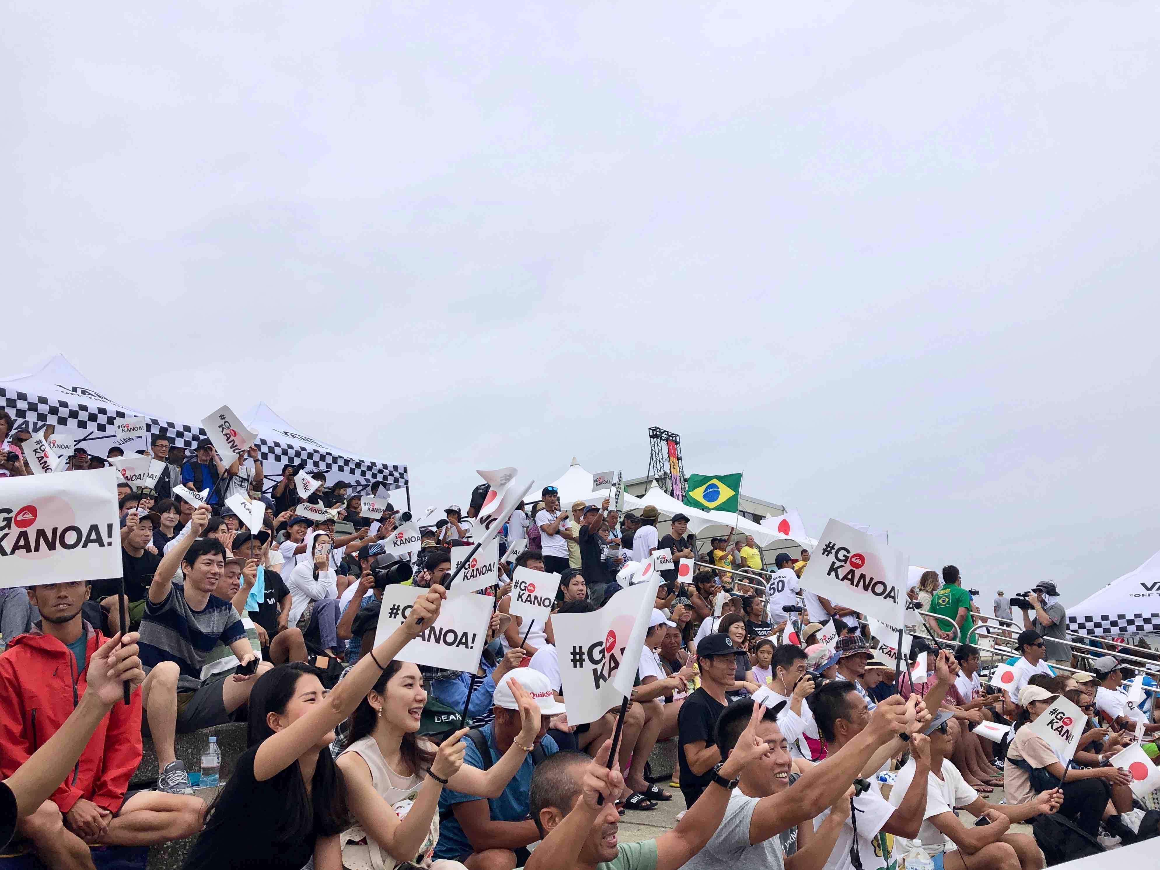五十嵐カノアの人気の高さは半端じゃない。五十嵐カノアのヒートで彼が波に乗ってハイパフォーマンスを見せる度に沸き起こる歓声。Go Kanoaの旗を振るギャラリーたちのその姿は未だかつてないサーフィンブームの到来を痛感させられる光景に他ならない。