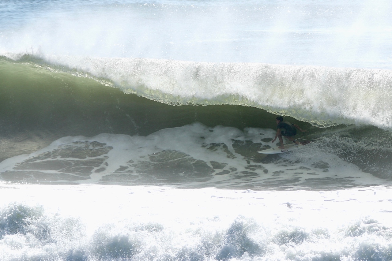 ロコボーイの熊谷航、鈴木晋太朗、高橋雄治、後藤朝子プロらが続々とパドルアウトし、AM7:00をまわる頃、松岡慧斗プロが到着し、皆でバレルセッションとなった。