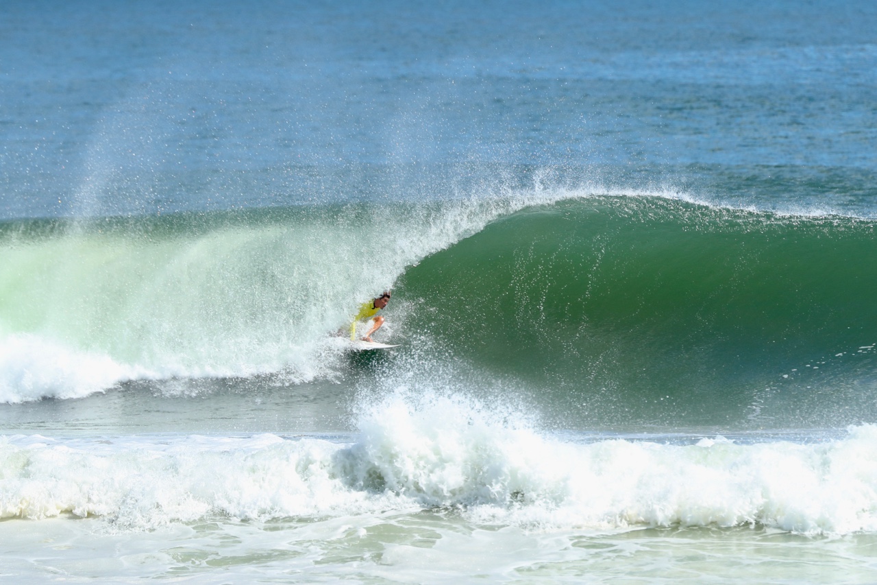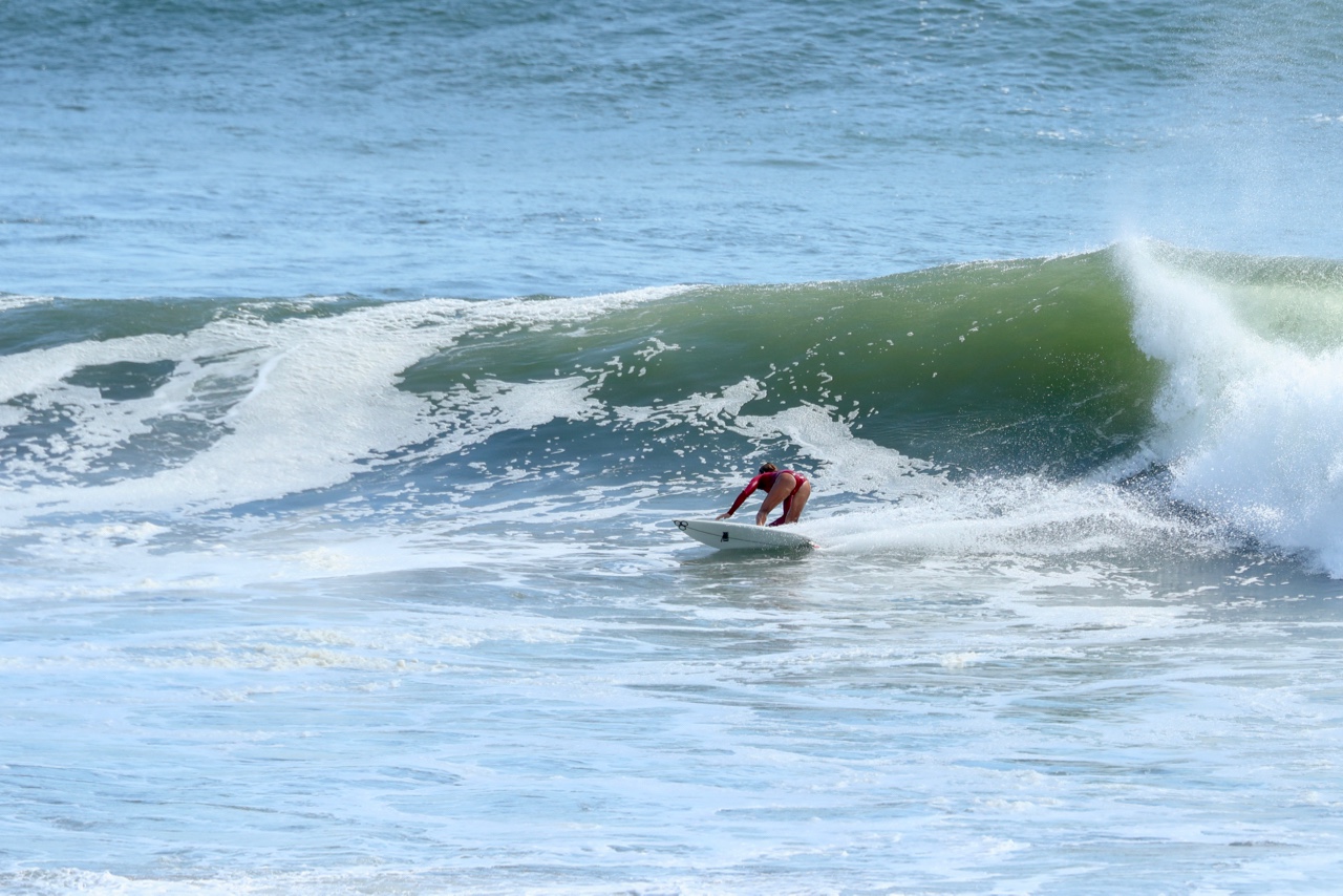 朝一から何本も深いポジションからチャージしていた鈴木晋太朗。最後の波でフィンが顔にヒットし、4針縫うことに…。Shintaro Suzuki.