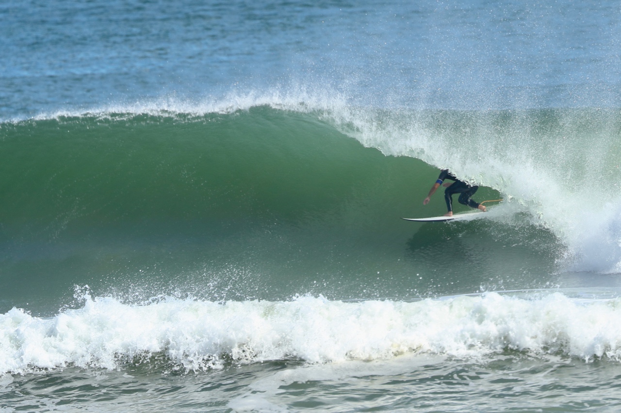 前日は雨模様ではありましたが、ゆるいオフショア、頭〜頭半のチュービーなコンディションとなった。