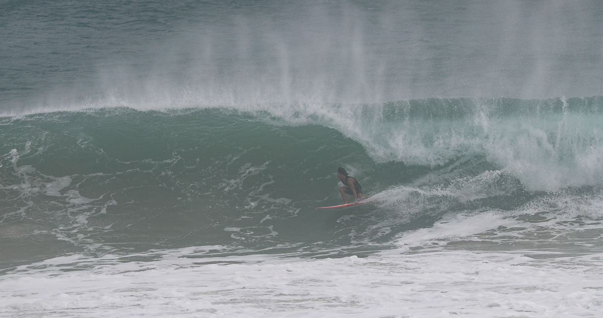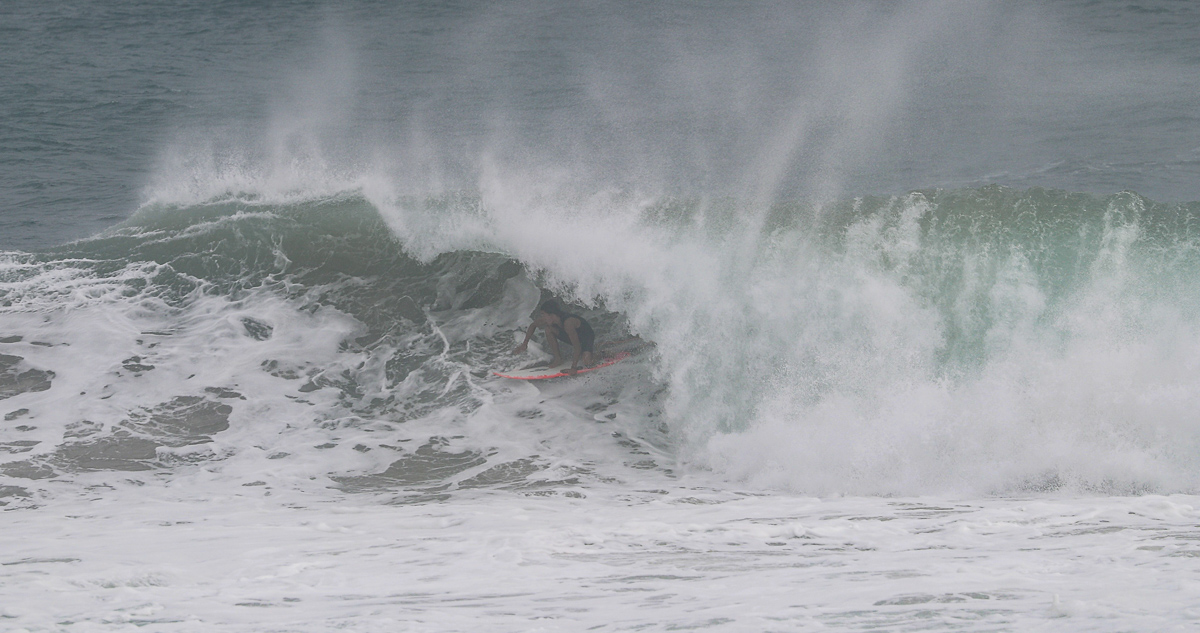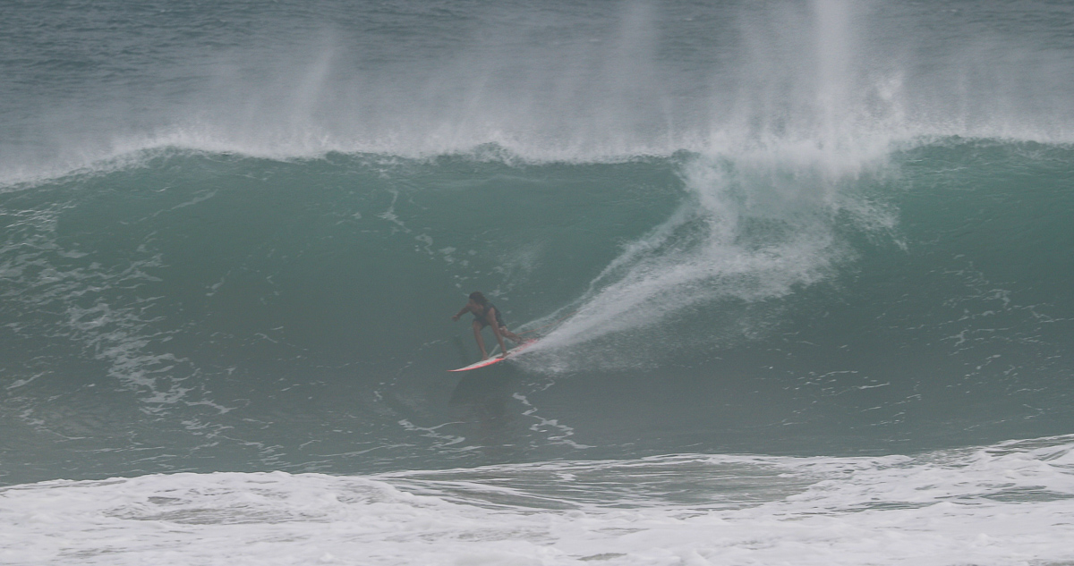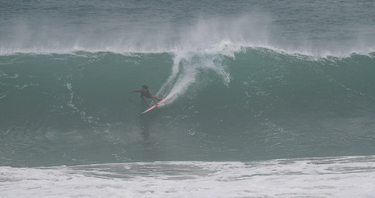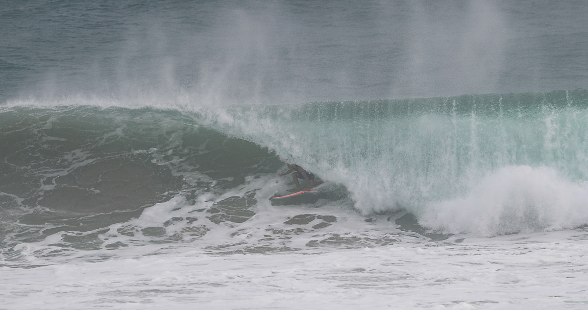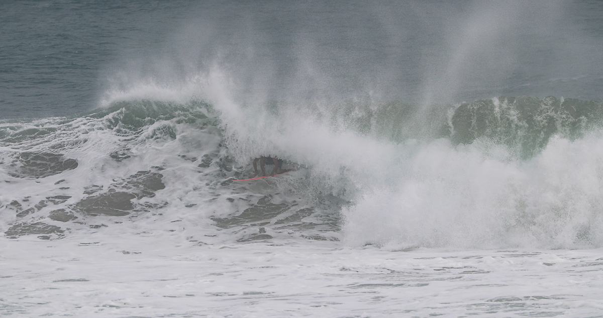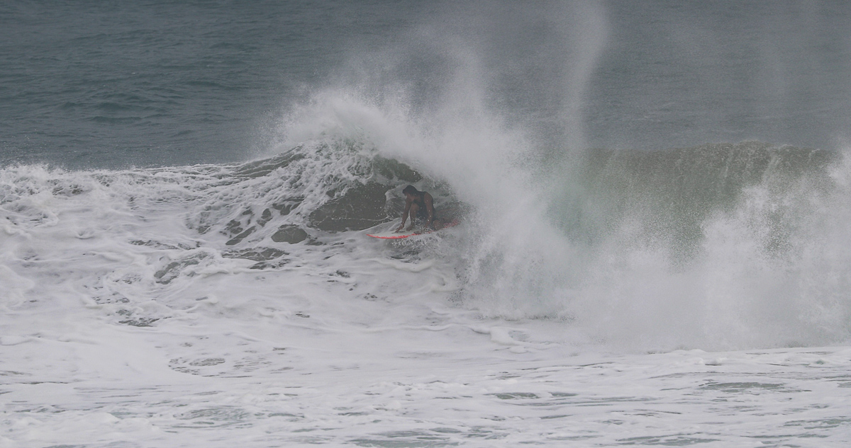 仲村拓久未はノーズが折れ、河谷佐助は波の力によってウエットスーツが切り裂かれるというハプニングとなり、多くのプロたちがサーフィンすらしなかったハードコア・セッションの中、ベストシークエンスでありベストチューブを決めてくれた河谷佐助によるバックサイド・グラブレールのシークエンスをお届け!!