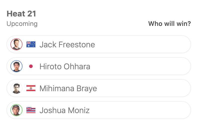 さらにヒート21では大原洋人がCTサーファーのJack FreestoneにJosha Moniz、Mihimana Brayeと対戦することとなっている。
