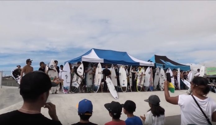 その大会2日目に行われたプロサーファーたちによるエキシビジョンは、セット膝のスーパースモール・コンディションにも関わらず、およそ20名以上のプロサーファーたちが集結!