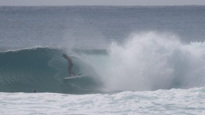 早朝はここのビーチがチューブ波になっている情報が出回っておらず、少し遅れ気味で駆けつけたにも関わらず、わずかな時間で誰よりもいい波を掴みチューブをガチ決めしていった田中英義さすがと改めて痛感させられたcolorsmagでありました。