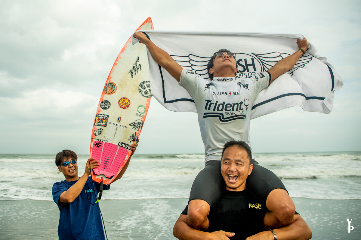 大阪出身のプロサーファーとしては史上初のグランドチャンピオン獲得を果たした河谷佐助。この最終戦を迎える以前はJPSAランキング3位にポジション。この最終戦での好成績のみが逆転のチャンスのカギを握るという状況の中、見事そのプレッシャーを打ち破る快進撃をみせた。Sasuke Kawatani.