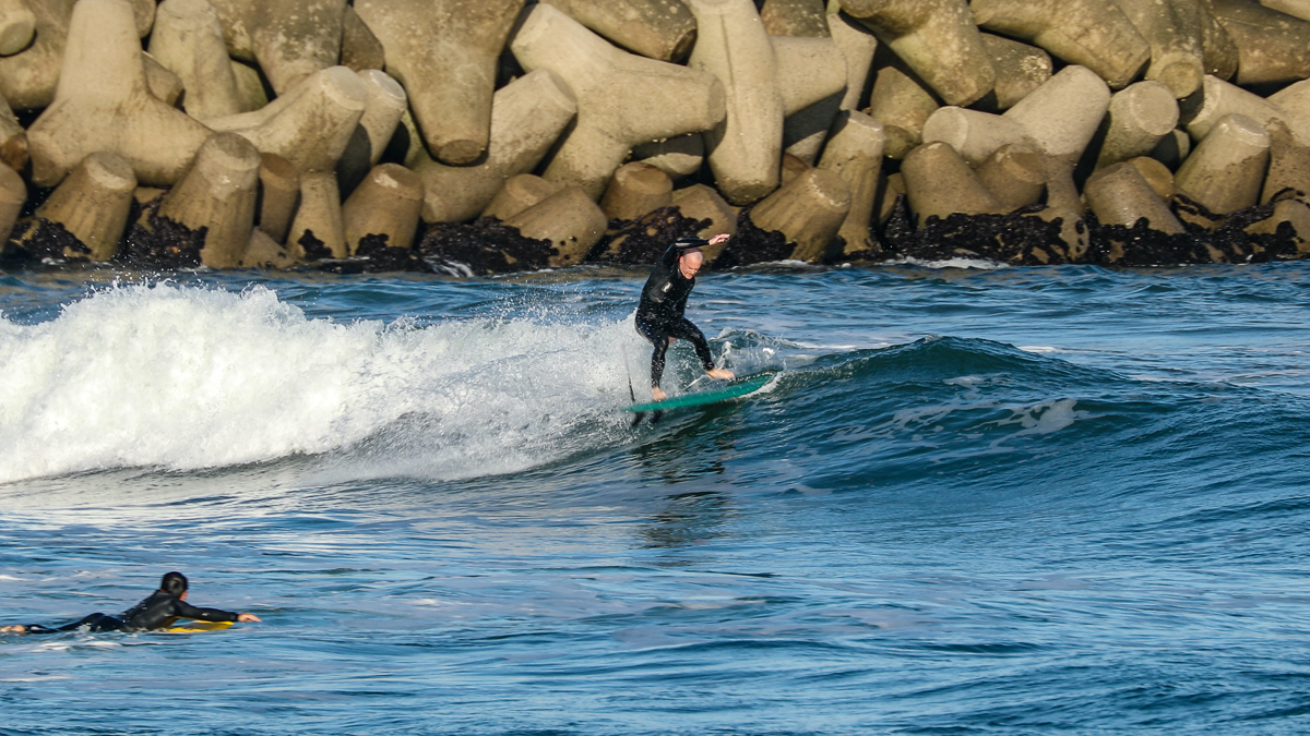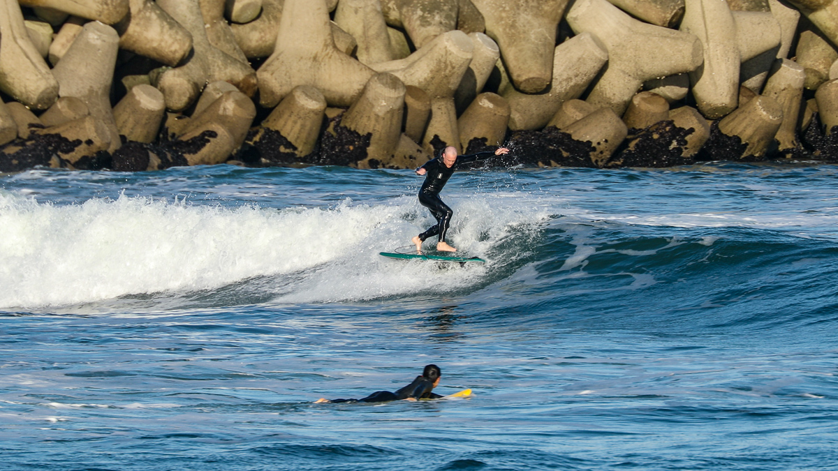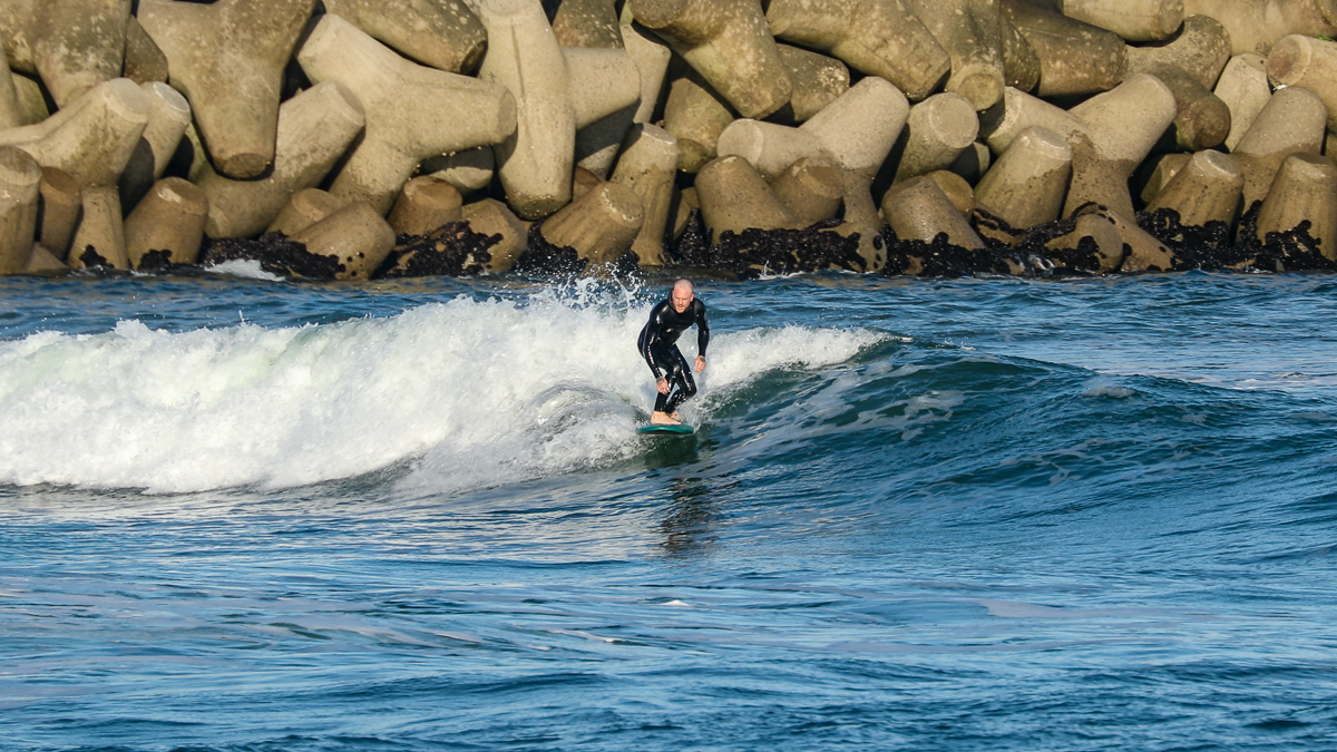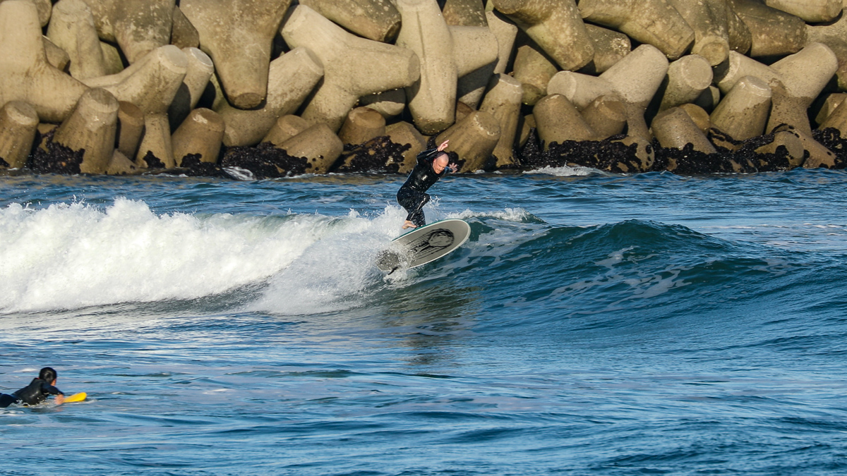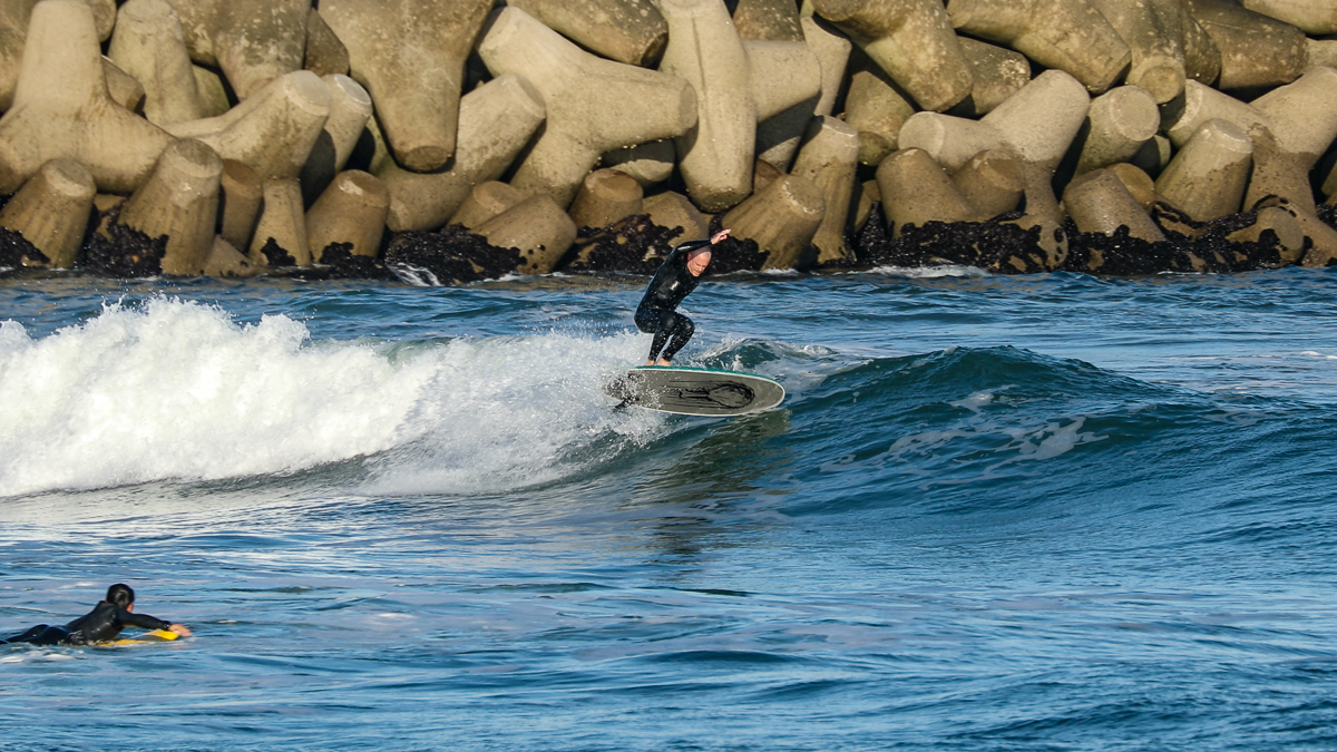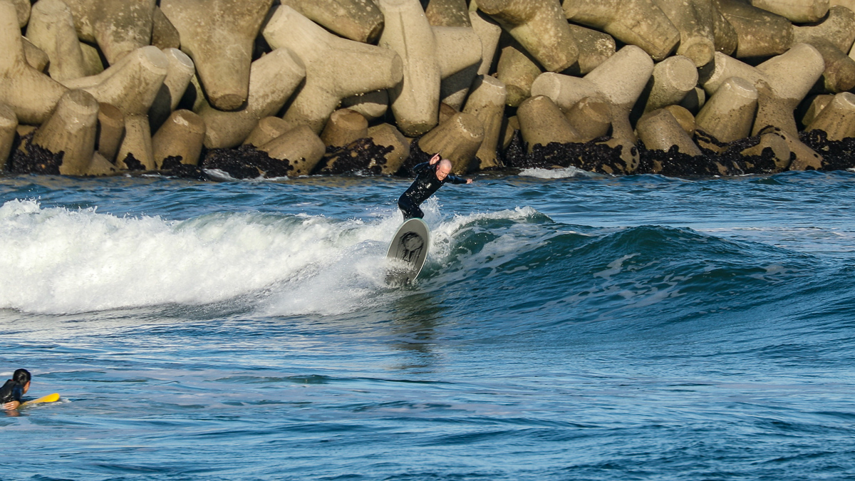 そんな彼は、10/27(日)に湘南の鵠沼でデモセッションを行なった後、10/28(月)には日本一のビーチブレイクとして知られる仙台新港に到着。