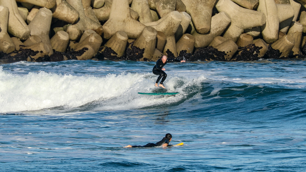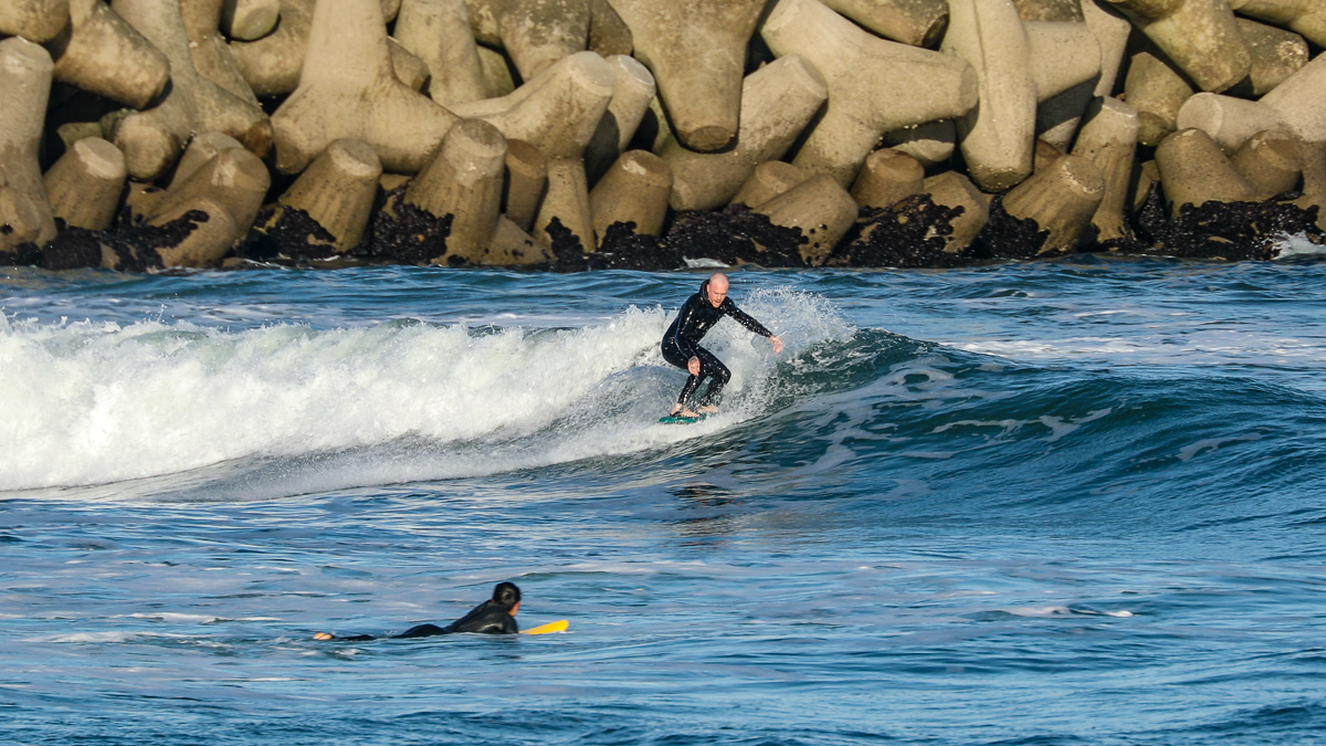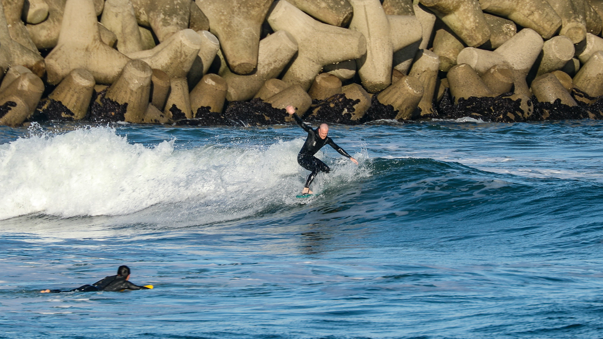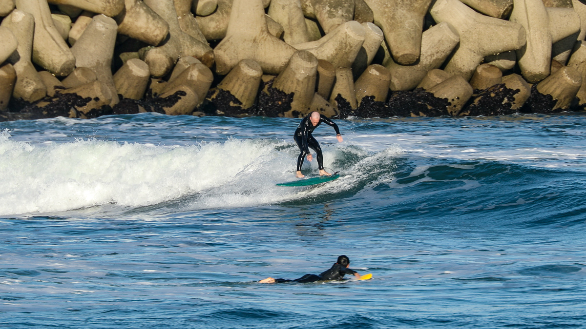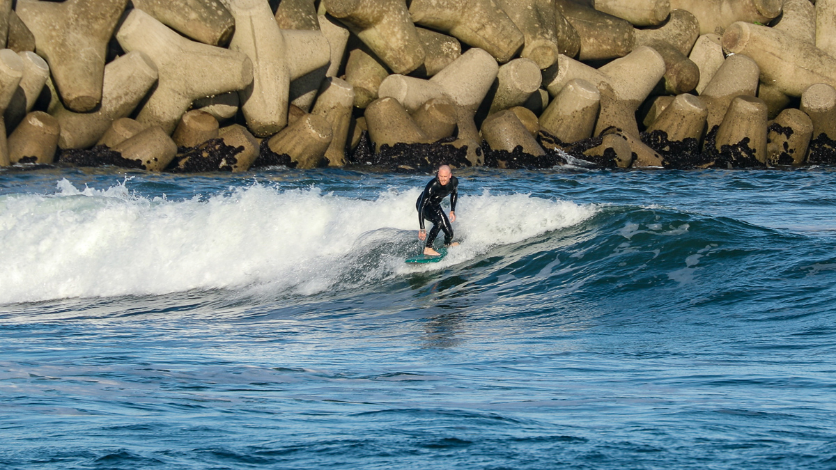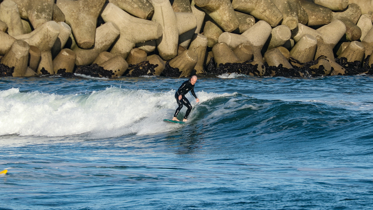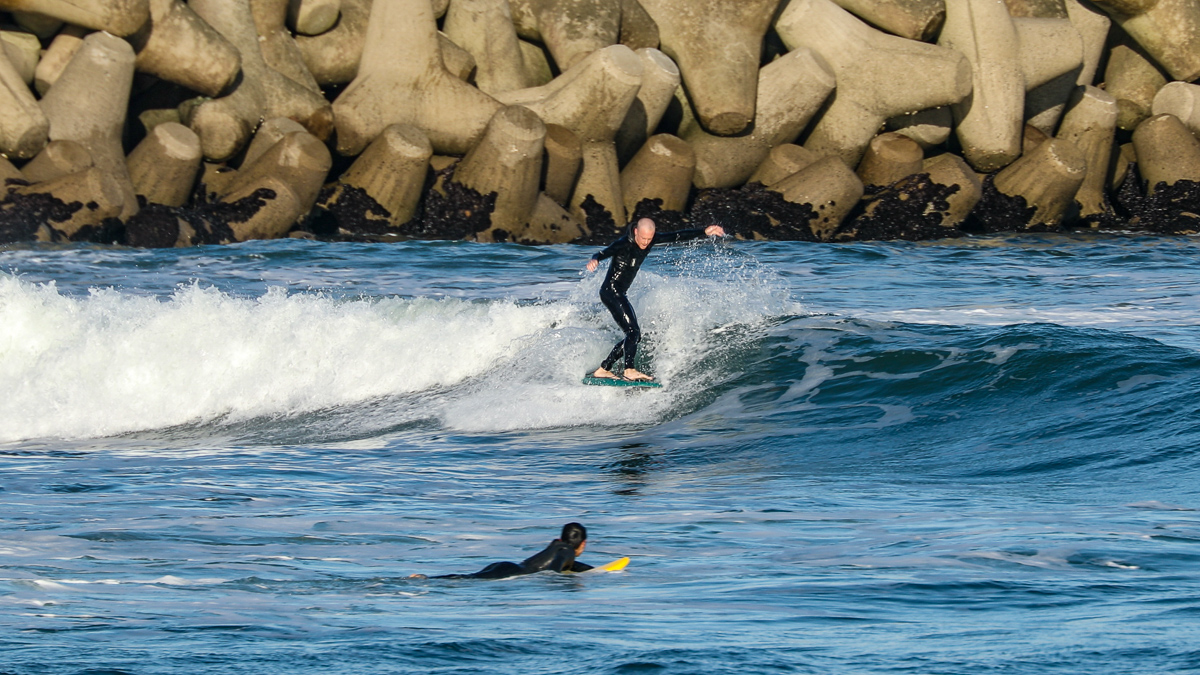 そんな彼は、10/27(日)に湘南の鵠沼でデモセッションを行なった後、10/28(月)には日本一のビーチブレイクとして知られる仙台新港に到着。