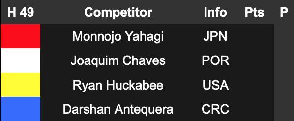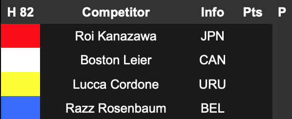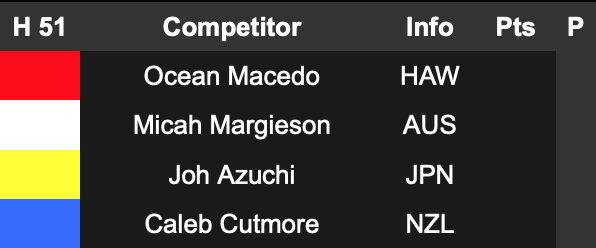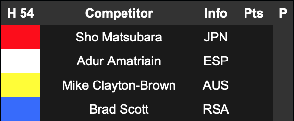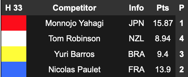 岩見天獅がヒート4でJackson Bunch(HAW)、Kaiser Auberlen(GER)、Tom Butland(NZL)と対戦。