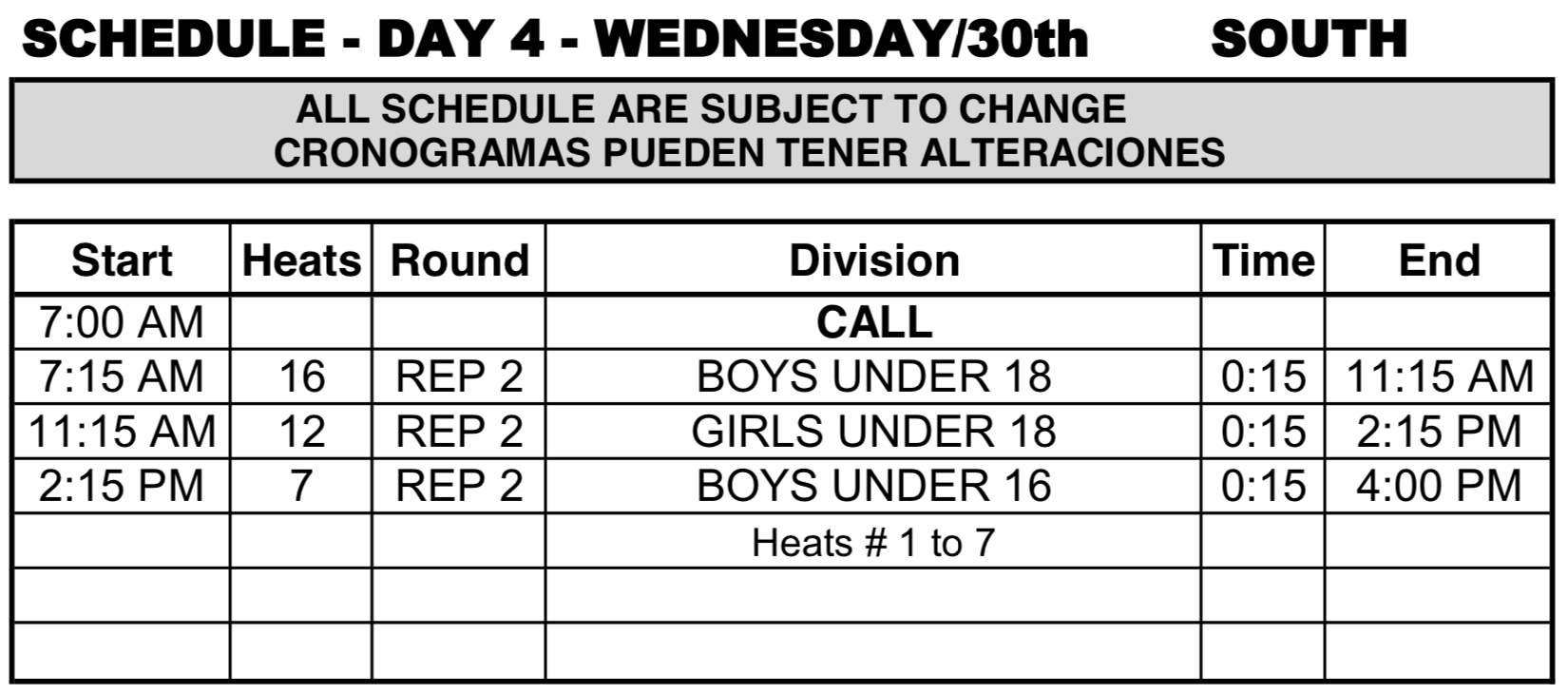 また南会場では、U-18 Boysのリパチャージラウンド2とU-18 Girlsのリパチャージラウンド2、U-16 Boysのリパチャージラウンド2のヒート1からヒート7までが消化される予定となっている。